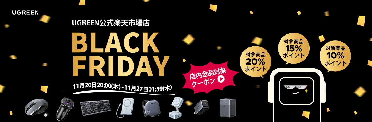 【UGREEN】最大20%ポイント還元、割引クーポンあり