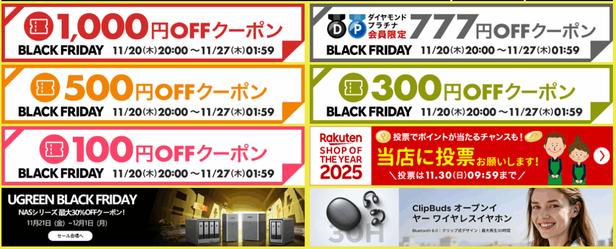 ブラックフライデー、お買い物マラソン、主要キャンペーンのリンク