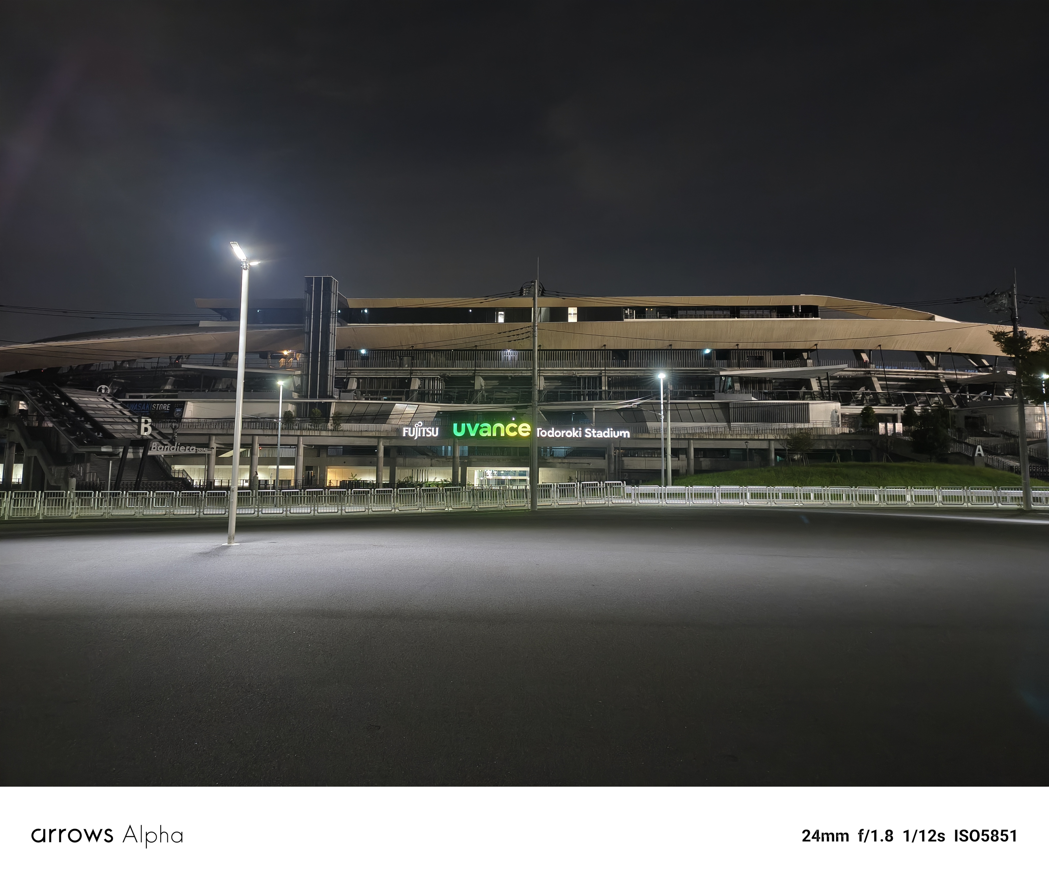 ただ、夜景など低照度時はかなり画質が悪く、ワンランク上の機種(ミドルハイクラス)のarrows Alphaと比べても歴然とした差がある。