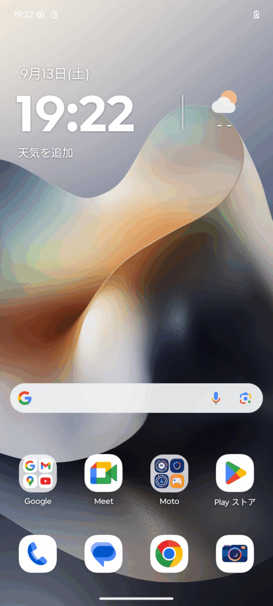 モトローラの初期化後(購入直後)にセットアップが終わった時点でのプリインストールアプリはかなり少なく、好印象だ。
