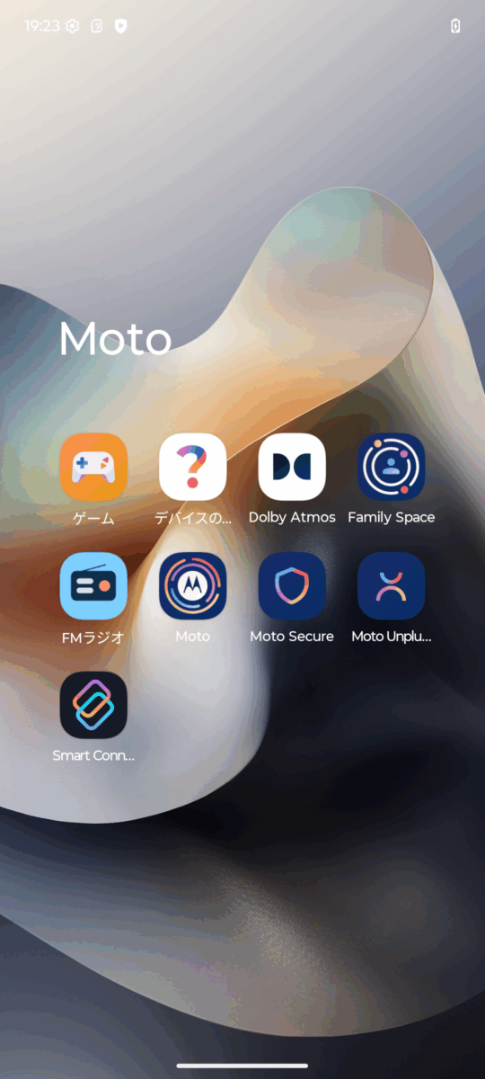 プリインストールアプリは上記画像に写っているもののみ。GoogleフォルダにはGoogle関連のアプリ、Motoフォルダにはモトローラ独自アプリのみとなっている。