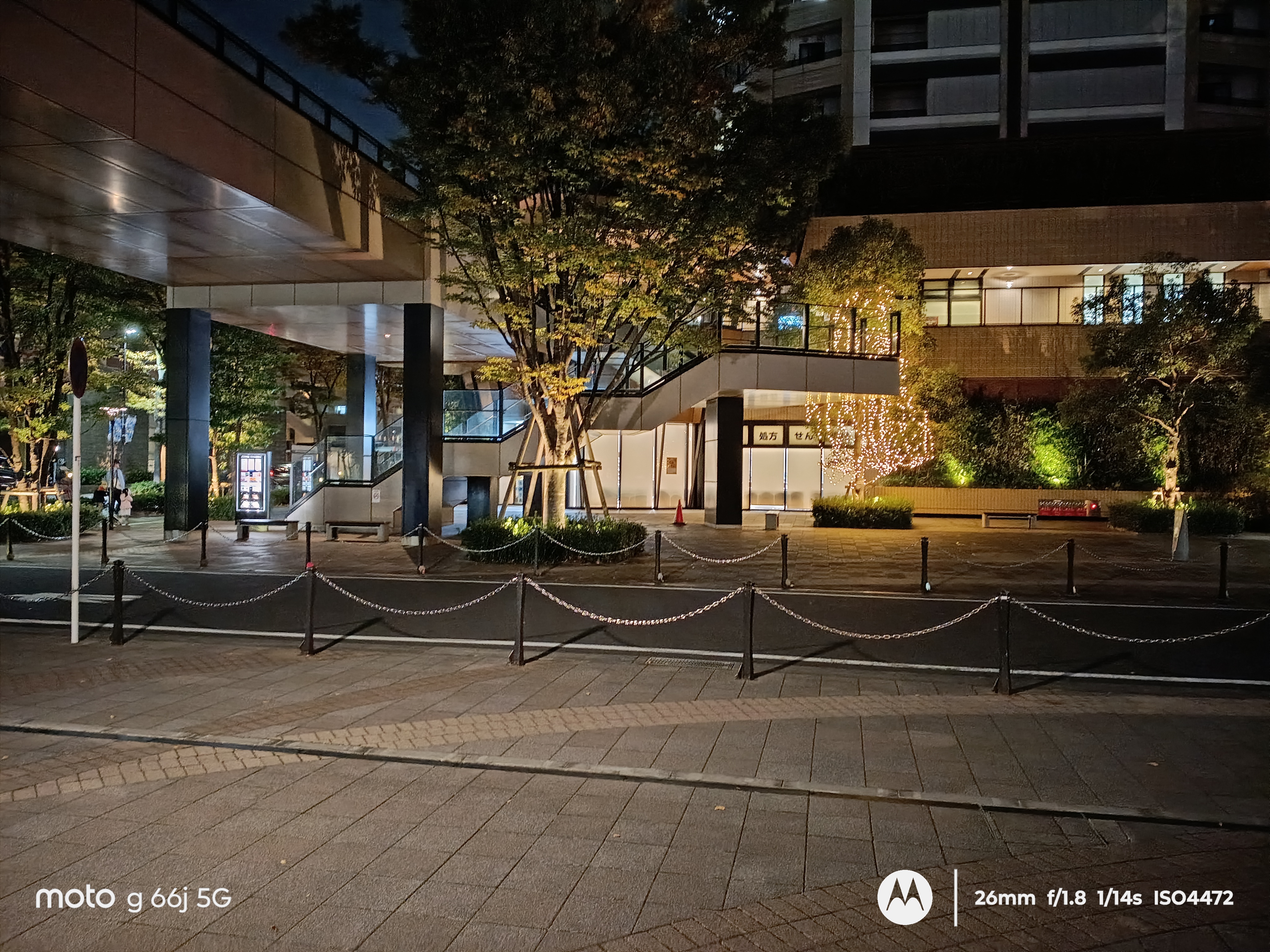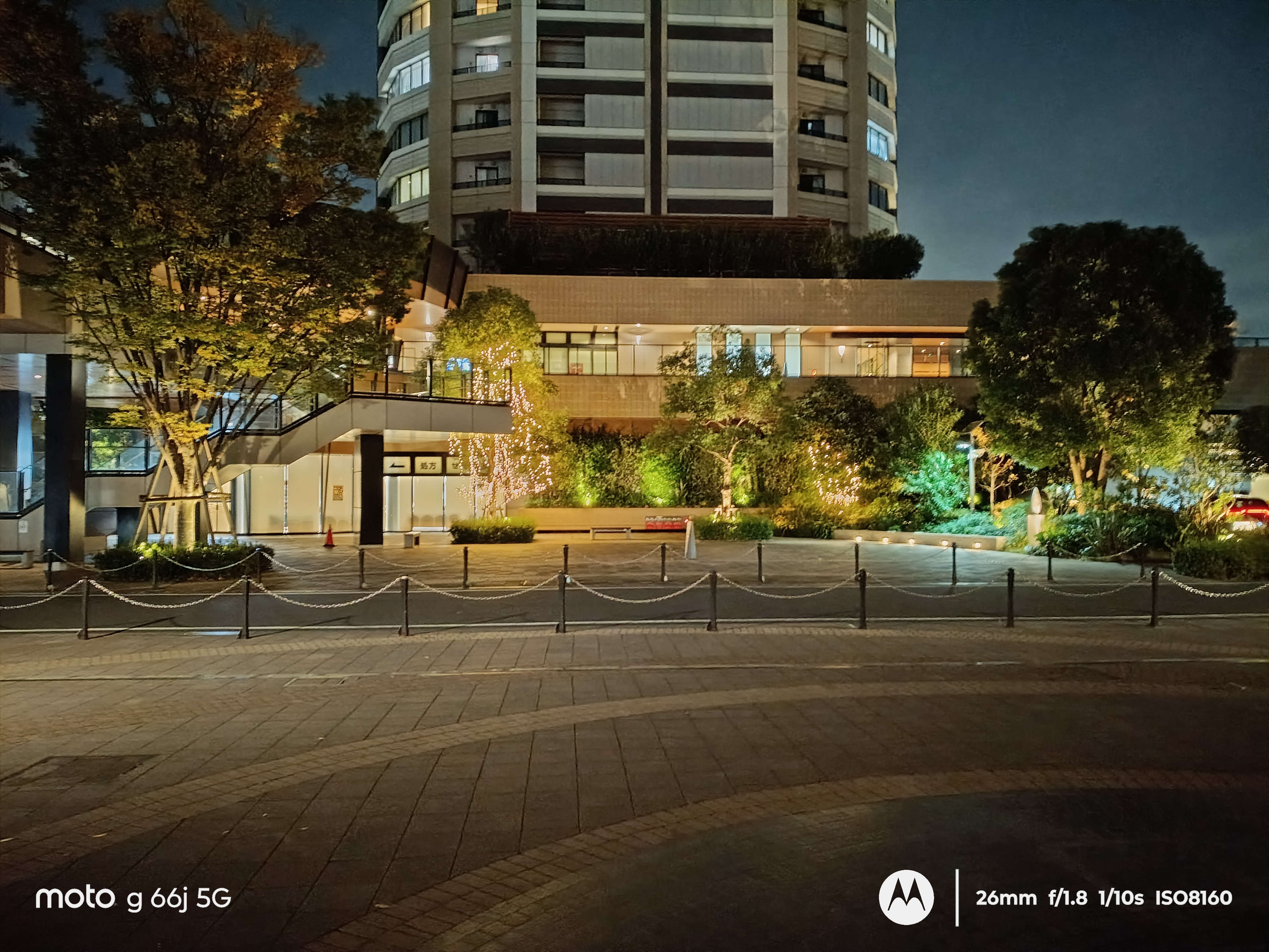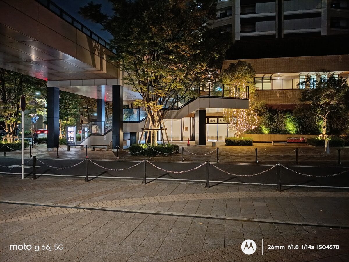 また、同じLYT-600(IMX882)を採用しているmoto g66j 5Gと比べると、夜景モードでの撮影では色味や露出、ノイズ感は上手という印象ですが、moto g66j 5Gの方が解像感が良い傾向でした。