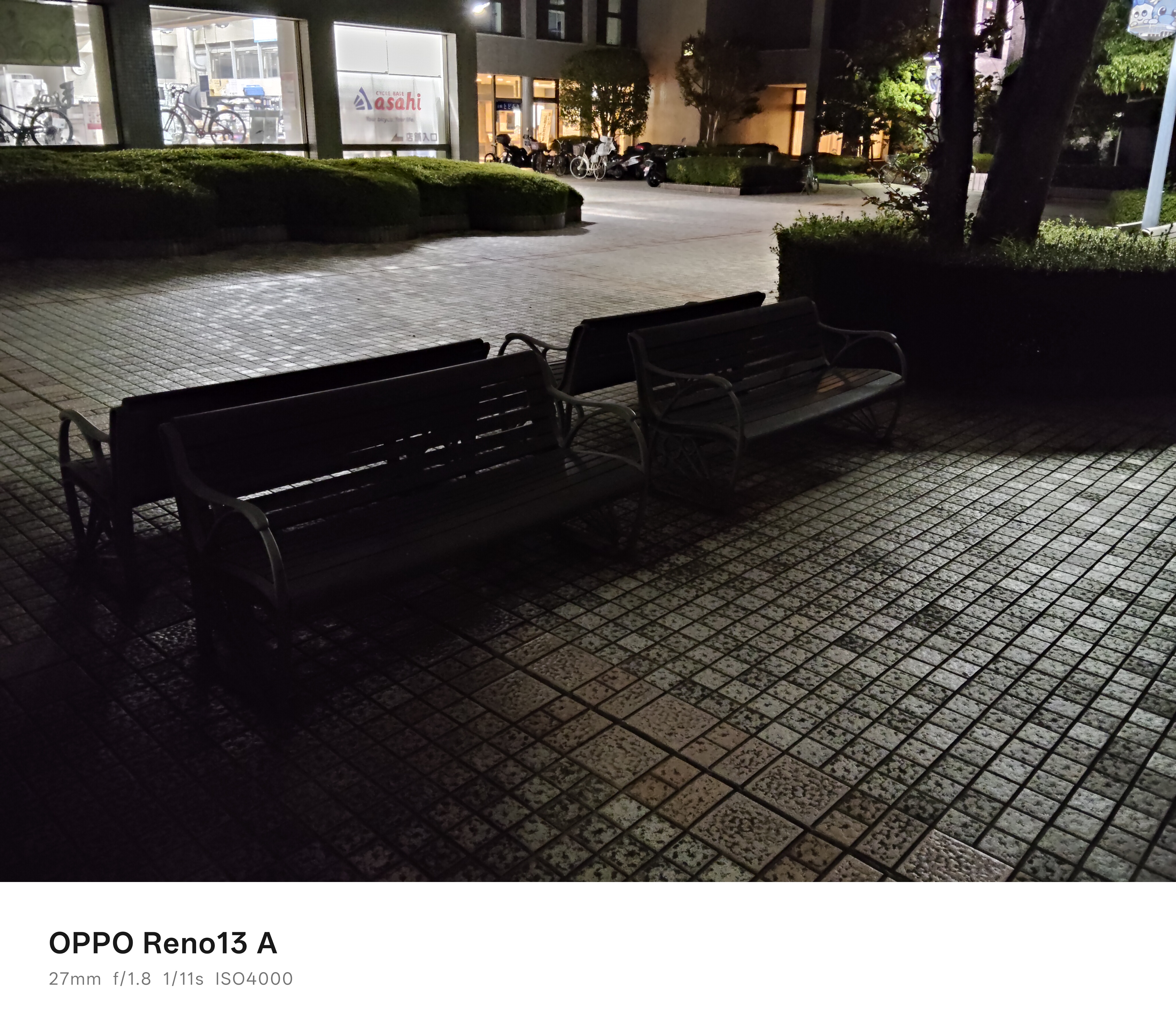 好みもあるとは思いますが、個人的に低照度時のReno13 Aは実用範囲内な画質になることが多い印象です。