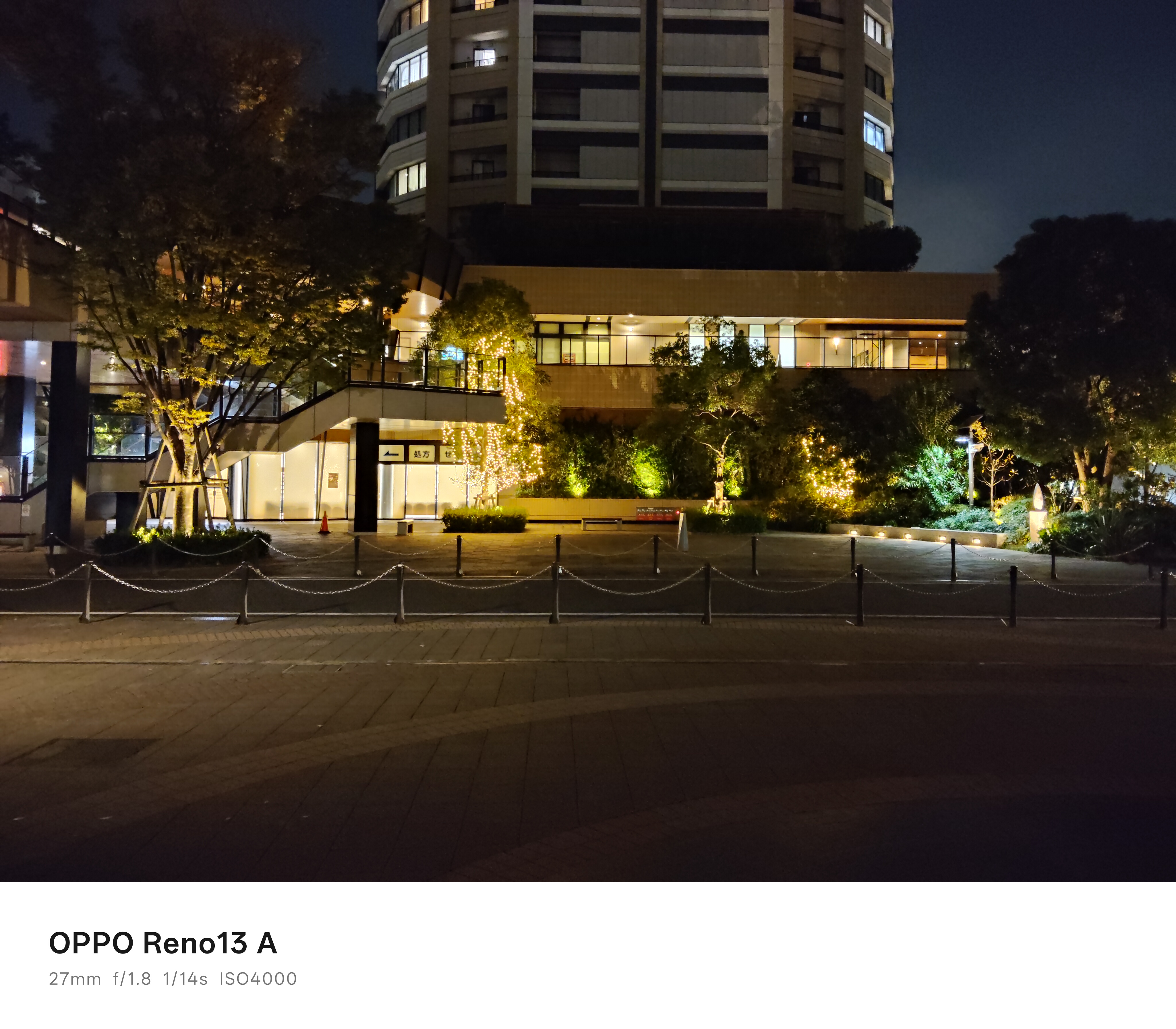 まず、Reno13 Aは【写真モード】の撮影の時と比べて解像感が上がっています。なので、低照度の時は【夜景モード】での撮影が必須といえる印象です。