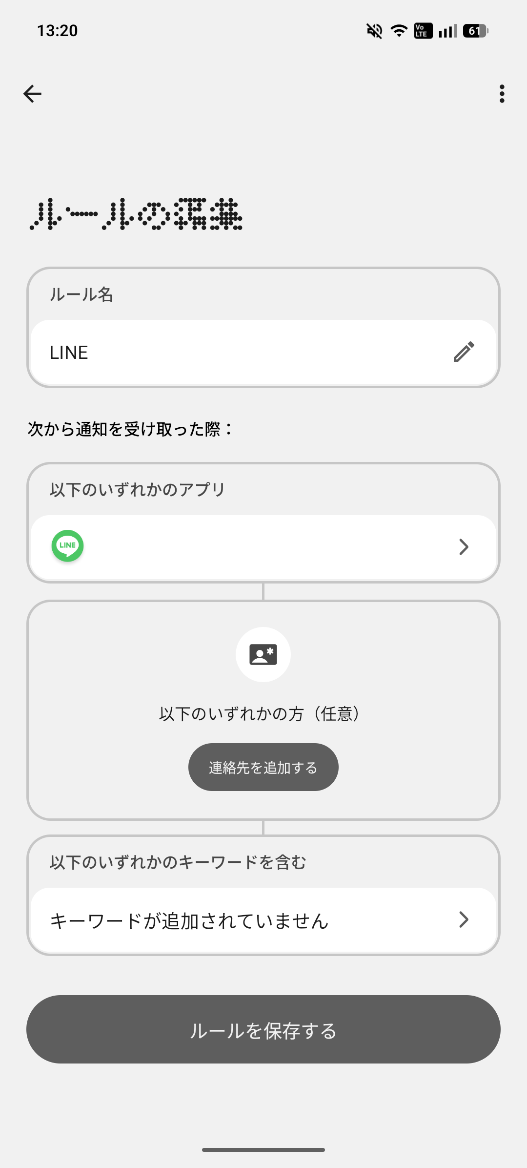 ルール名は自分が分かりやすい名称を入れておきましょう。では、今回はLINEの通知を設定してみたいと思います。
