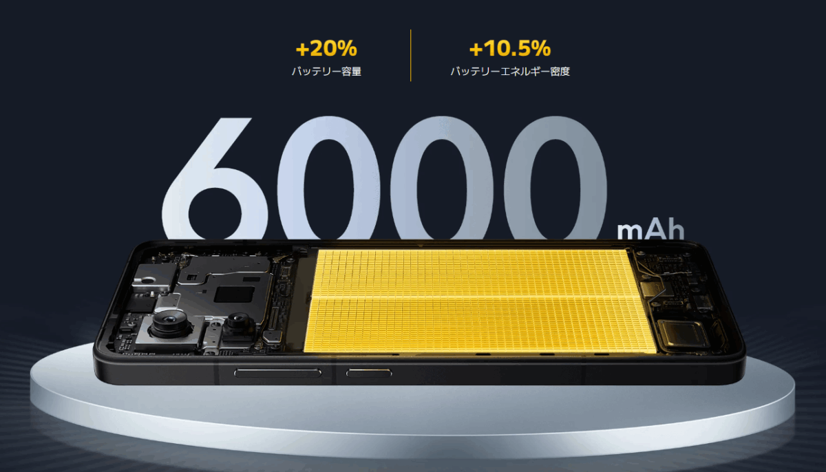 | 電池容量 | 6500mAh | 6000mAh | 5300mAh |