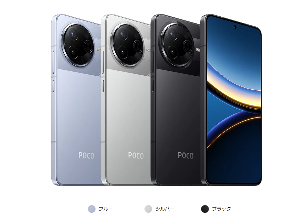 POCO F7 Proのカラー展開は3色でシルバー、ブラック、ブルーとなっています。