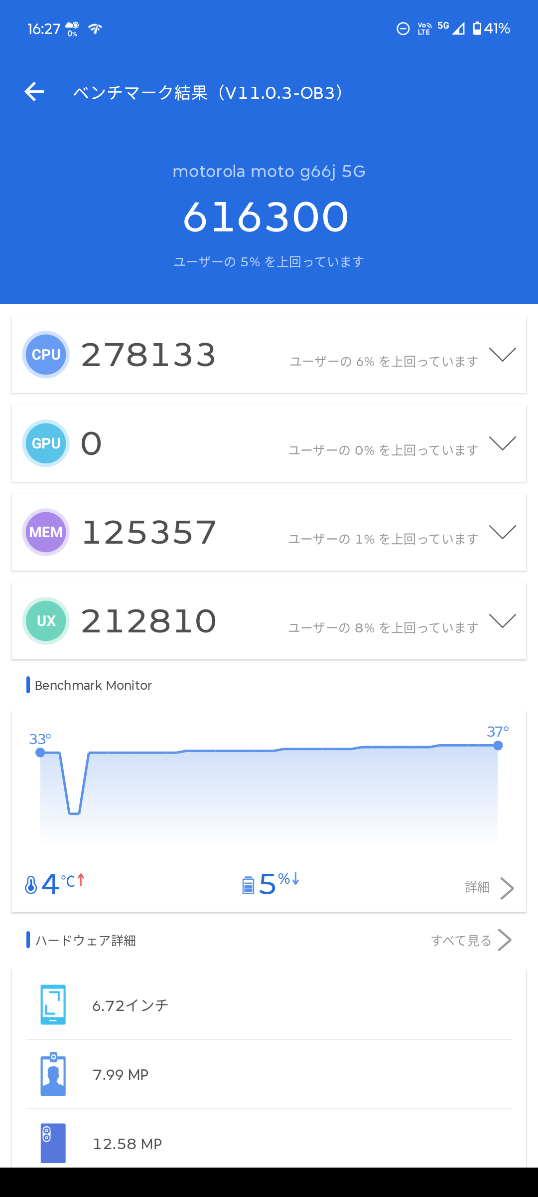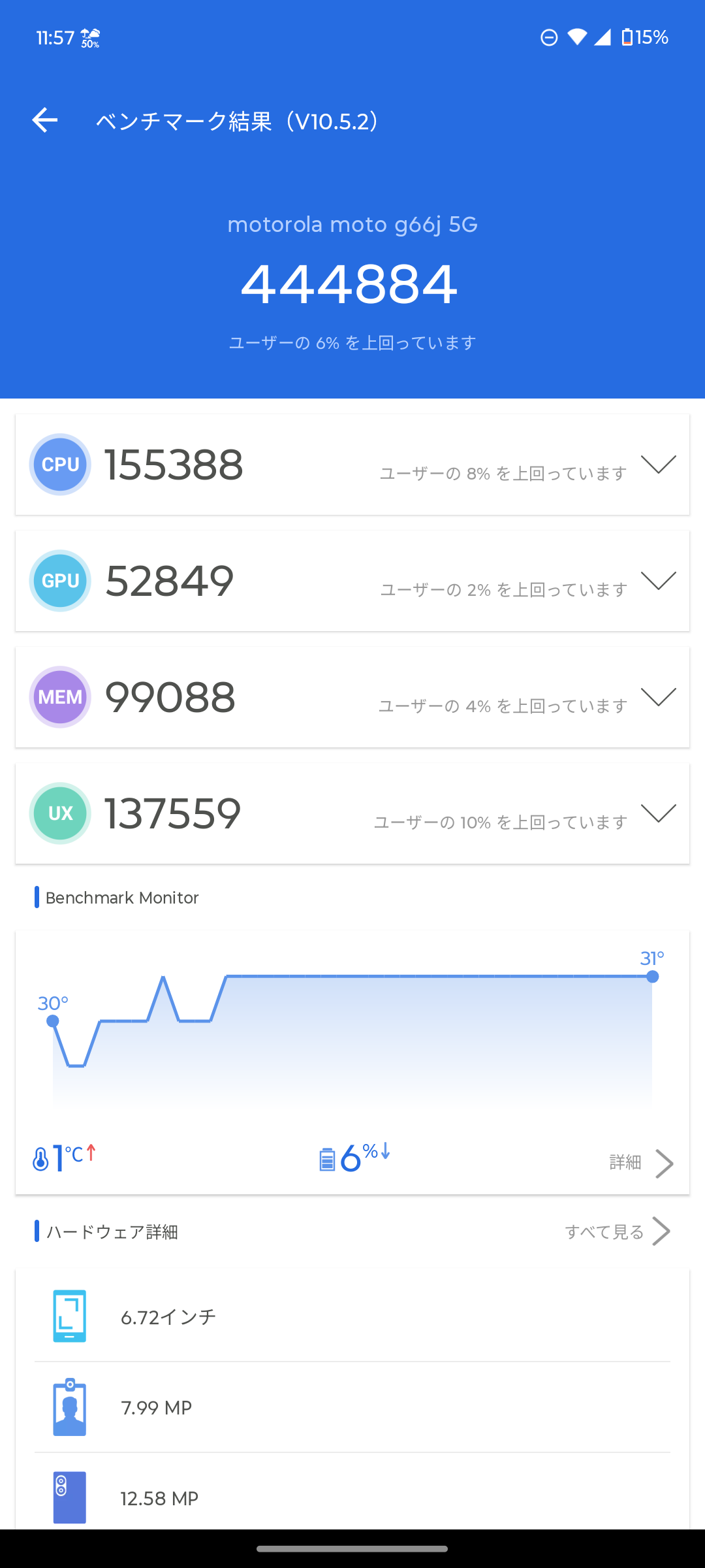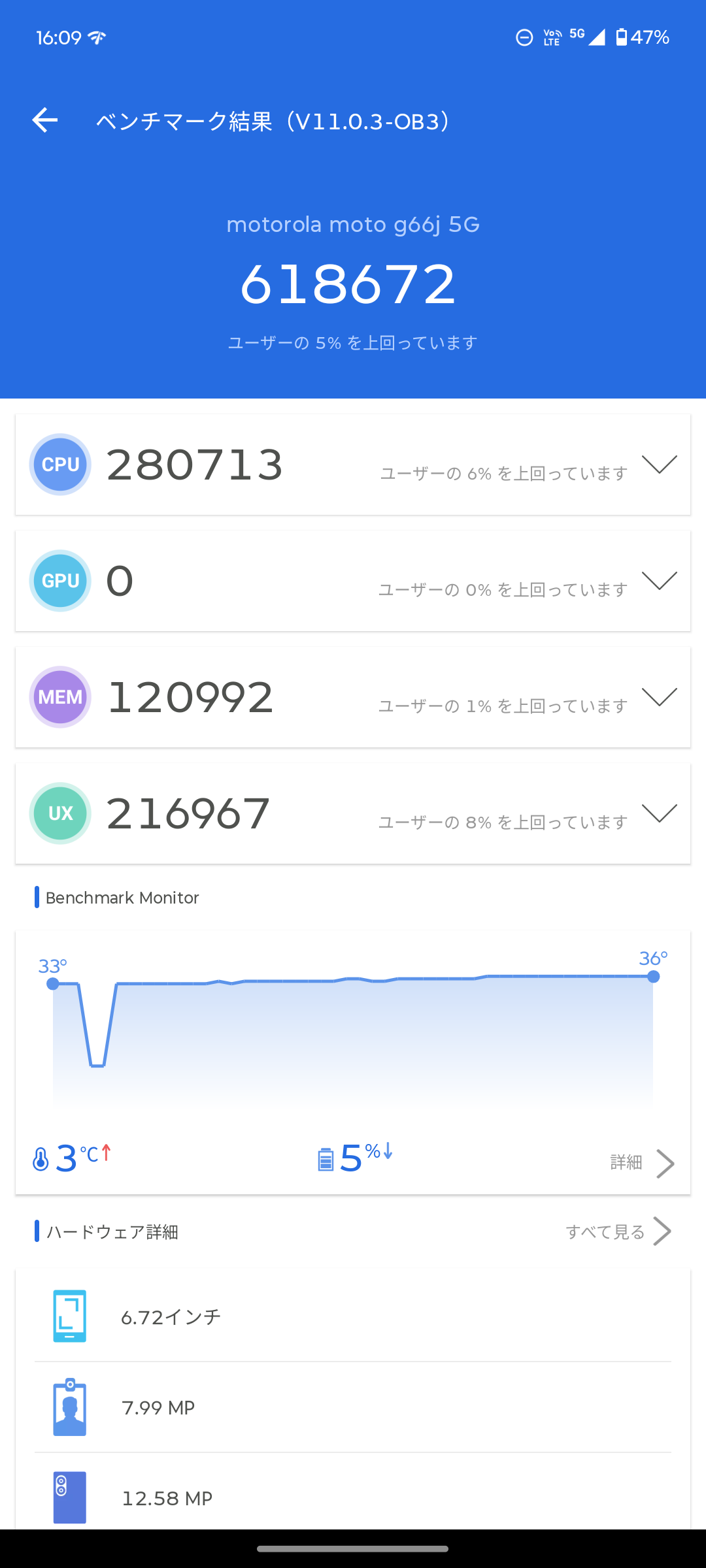 moto g66j 5Gはミドルローレンジというのがピッタリな動作感、ベンチマーク結果でした。