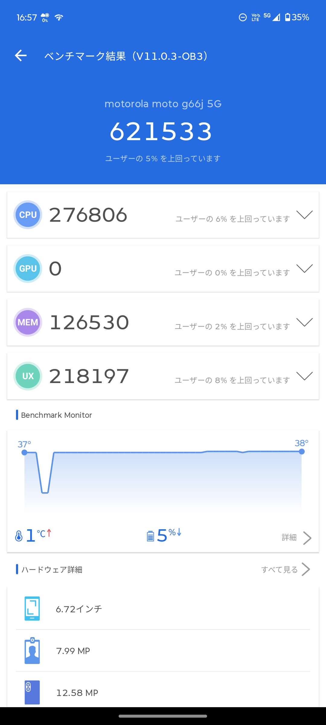 moto g66j 5Gの動作感、ベンチマークまとめ