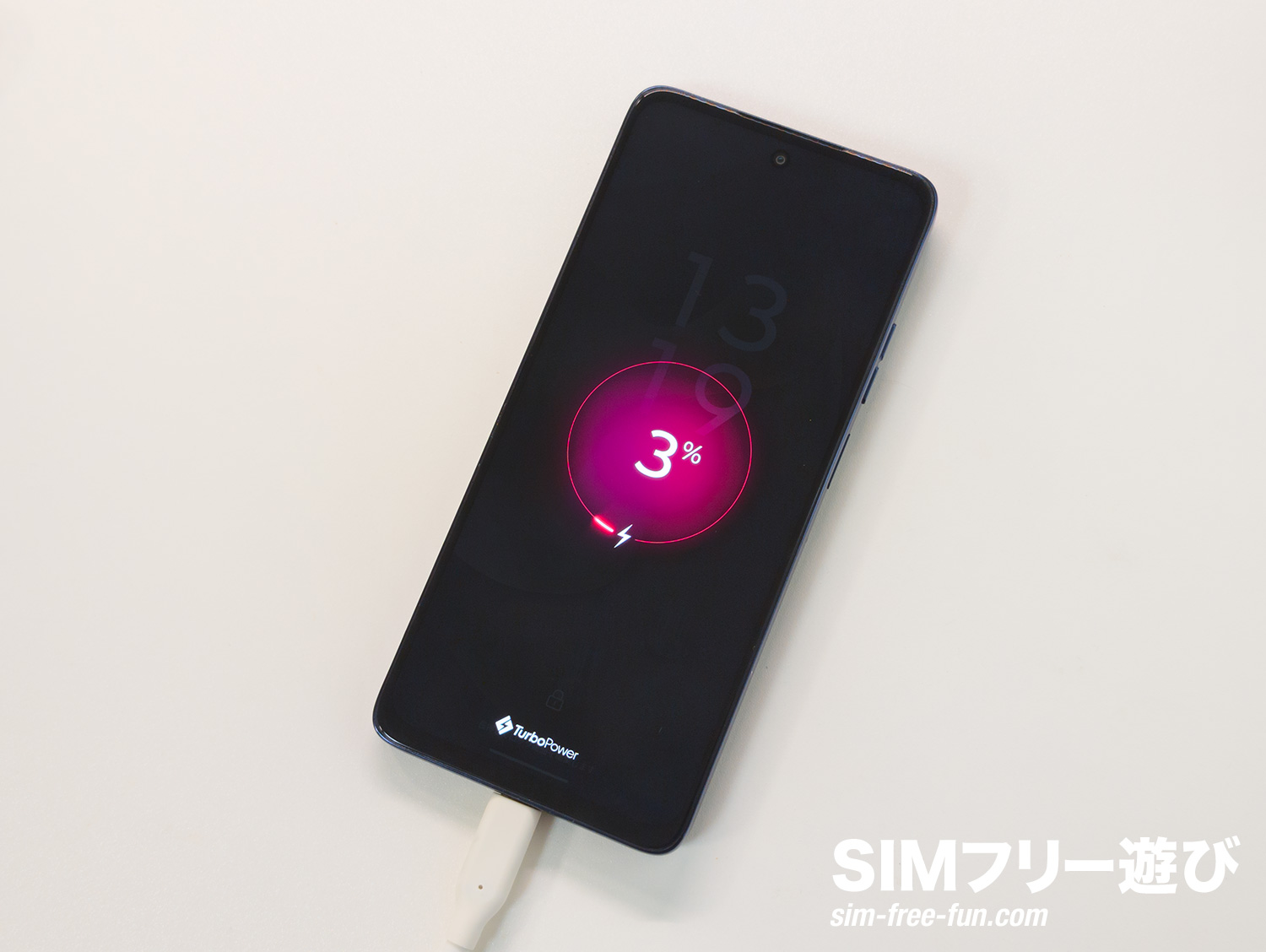付属品は本体にソフトケースが付属しています。その他はSIMピンと使用ガイドなど。充電器は付属しません。また、中華メーカーはフィルムが貼ってあることが多いですが、moto g66j 5Gにはフィルムは貼ってありません。