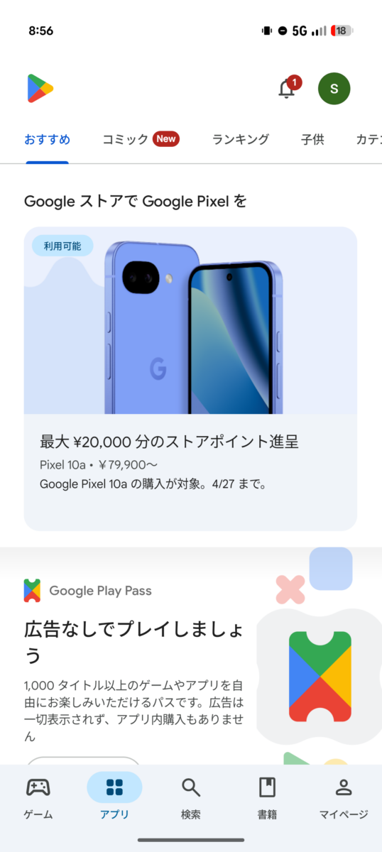 Google Play ストアに選ばれし者だけ最大20,000ポイントが貰えるバナーが表示されており、こちら経由で購入するとGoogle ストアポイントが20,000円分貰えます。