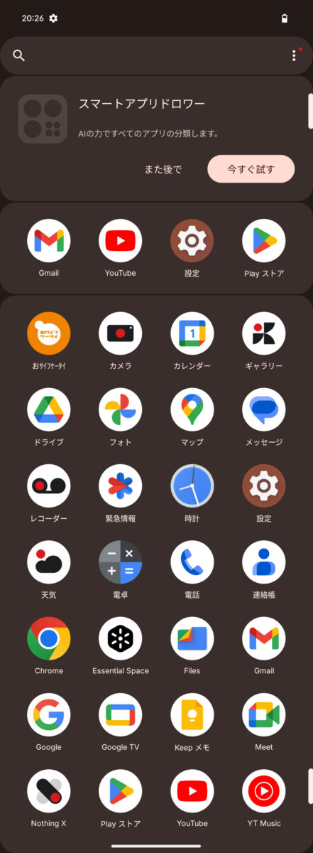 Nothing Phone (3a) のプリインストールアプリを確認してみましょう。