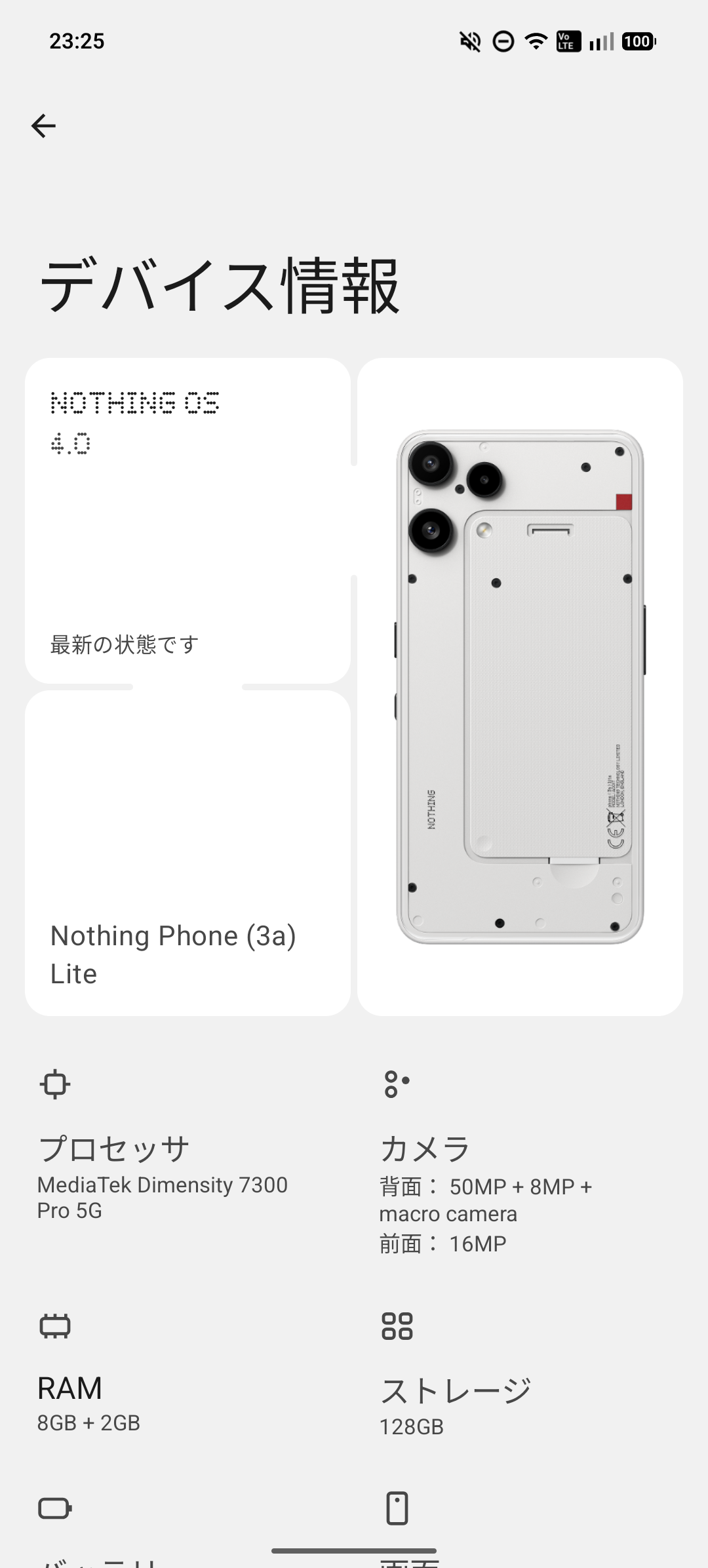 2026年1月5日に発売されたPhone (3a) Liteですが、1月30日時点でNothing OS 4.0へのメジャーアップデートがありました(アップデート前はNothing OS 3.5)。海外ではもっと前から発売されていた機種なので致し方ないですが、発売直後にOSアップデートの1回分を消費してしまうのはもったいないな…(Nothing OS 4.0で発売してくれたら良かったたのにな…)と。Phone (3a) Liteは3年のOSアップデートが保証されています。