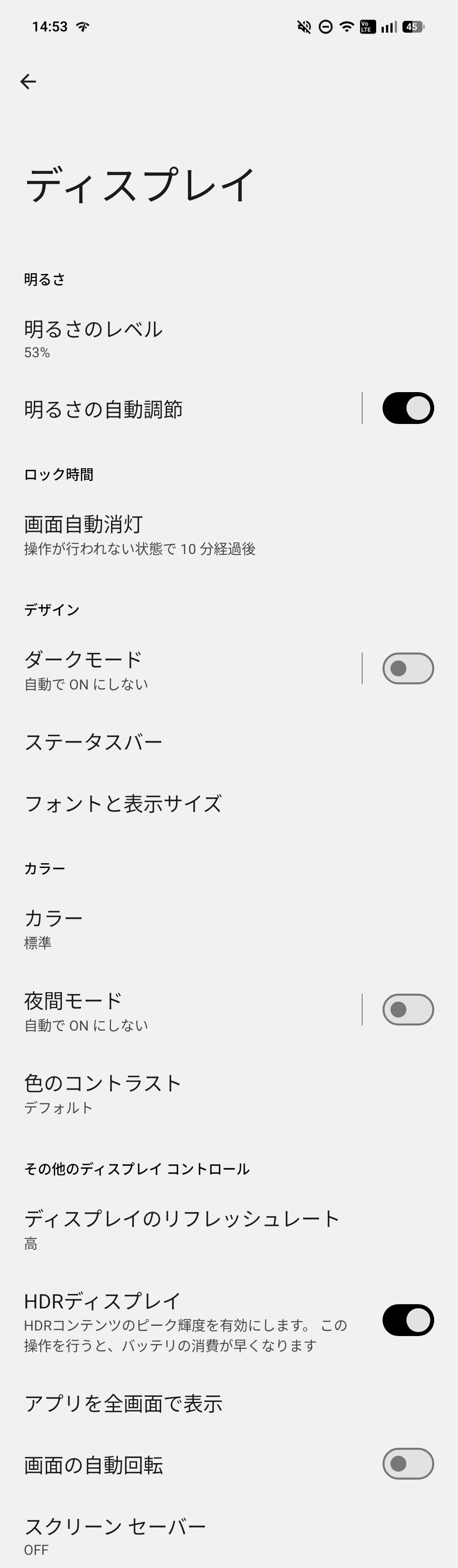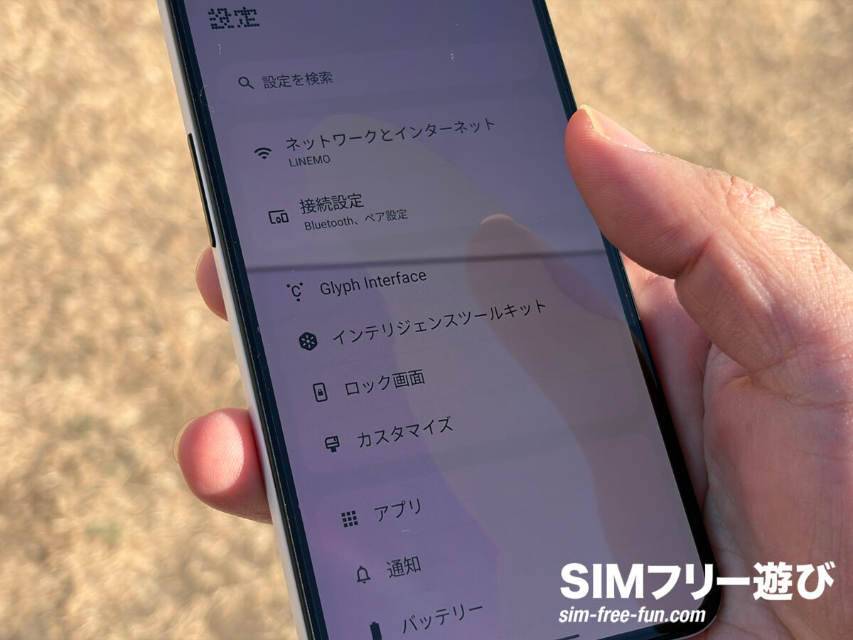 Nothing独自というような機能はなく、ディスプレイ周りは基本的に一般的な印象です。