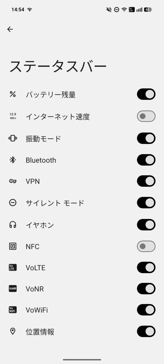 中華メーカーのスマホではよくありますね。Nothingでも表示設定する項目を選べるので便利です。