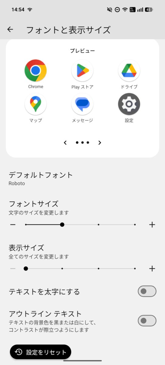 フォントや表示サイズはメーカーによって何段階選べるかは異なります(Pixelシリーズだとフォント7段階、表示サイズ5段階だったり、Xioamiではフォント7段階、表示サイズ3段階など)。