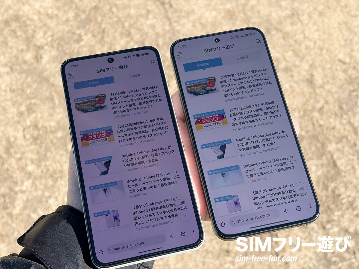 若干ですが、REDMI Note 15 5G、Pixel 9 Proの方が若干だけ明るいかなという印象を持ちました。ただ、ほぼほぼ同じと言うことで、ミドルレンジながらも最大輝度は十分と言えるでしょう。