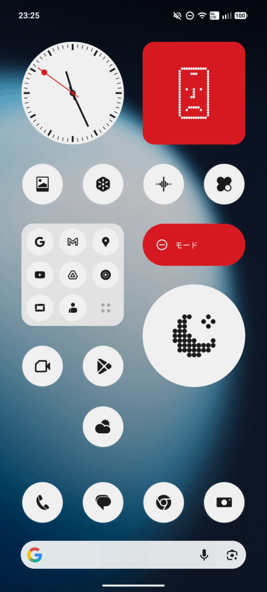 よくNothingのスマホのインターフェイス画面の例として、上記画像のようなものをよく見かけるため「クセが強そう…」「使いこなせるか…」「デザイン重視で使いにくいのでは…」と感じると思います。(筆者もその一人でした)