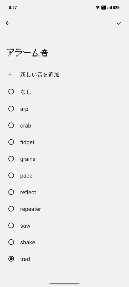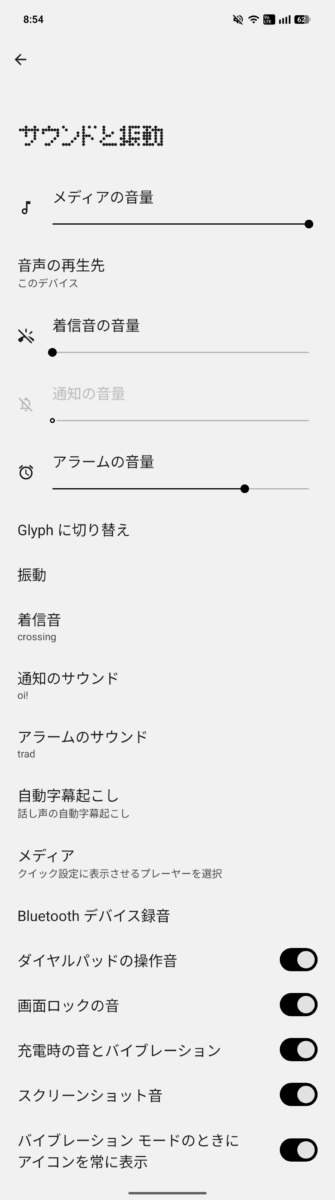 着信音や通知音、アラーム音はNothing独自の音が収録されています。基本的に甲高い音が多く、「今の音は何?」というような音ばかりです。ただ、新しい音を追加する項目があるため、自分好みの音を追加することも可能です。
