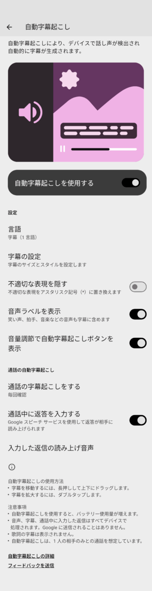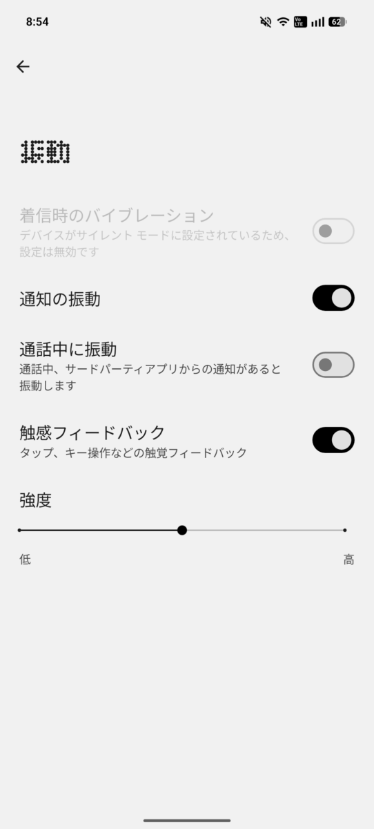 振動ではバイブレーションの設定、感触フィードバックの強度などが選べます。