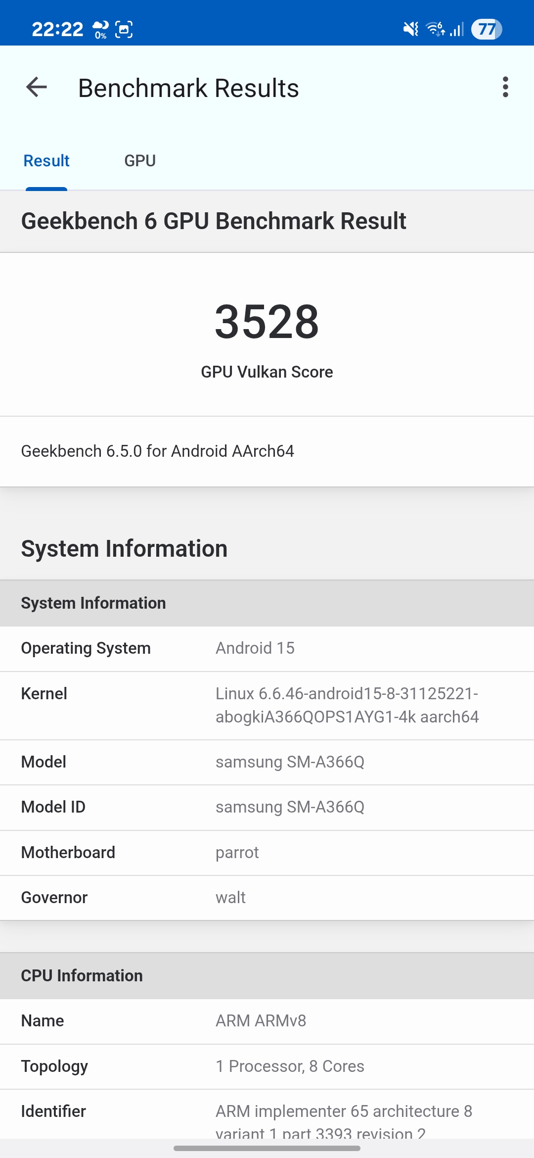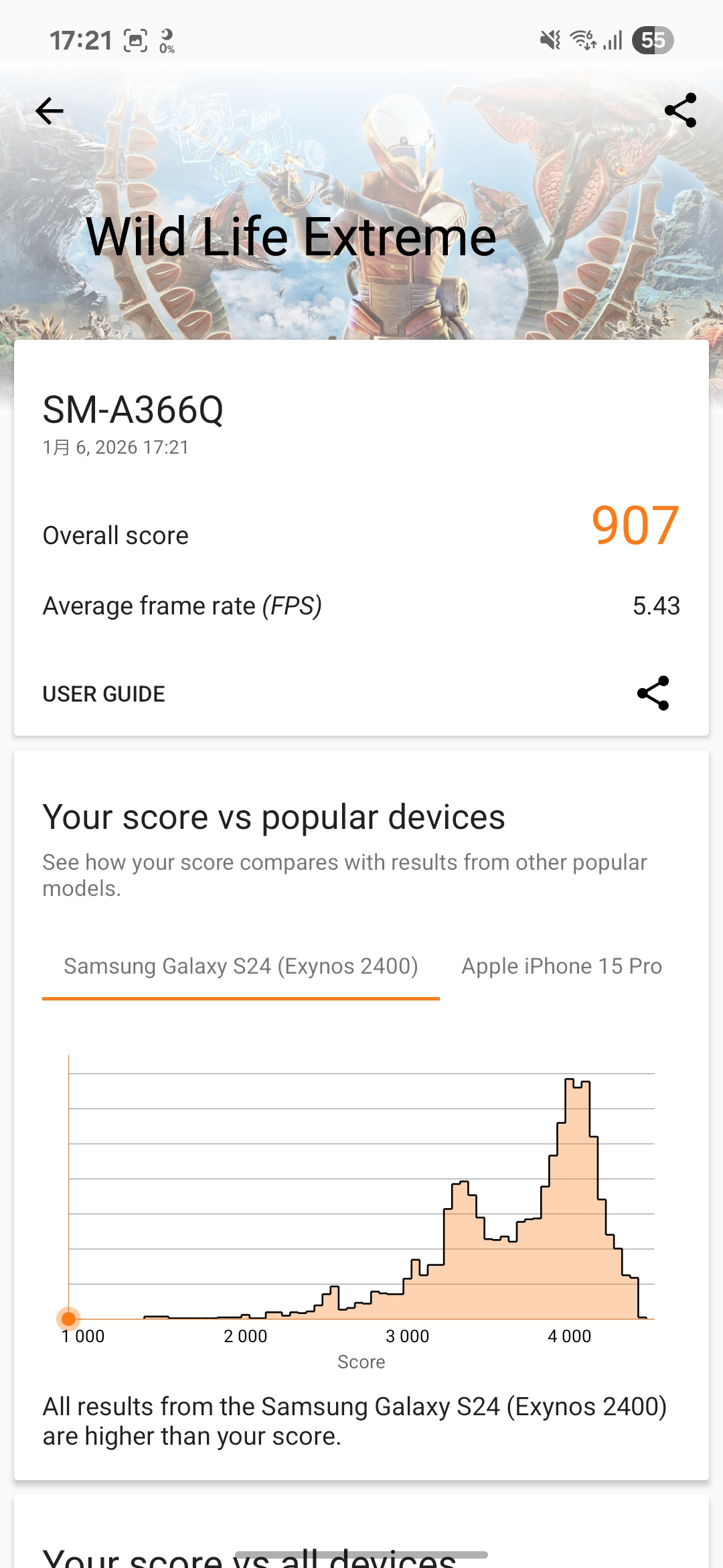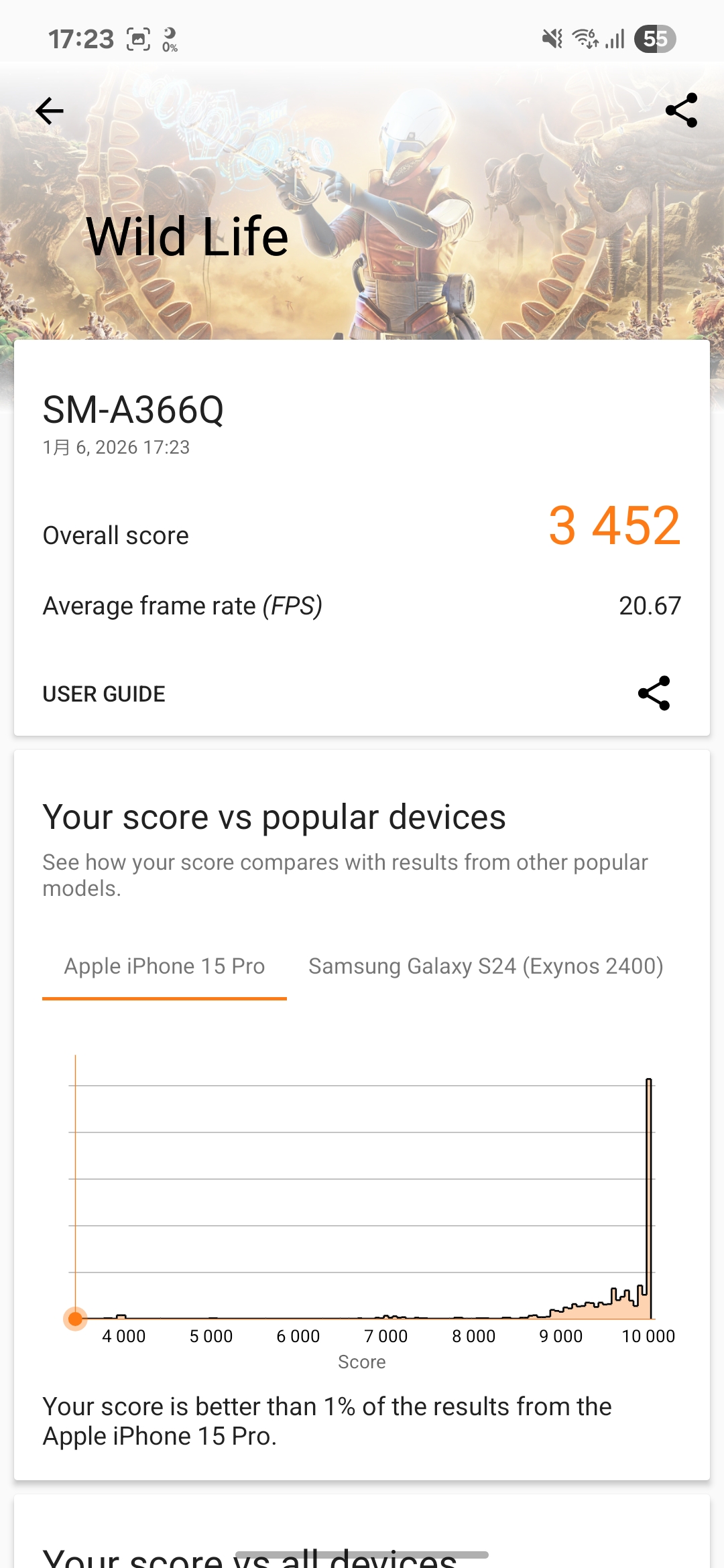 ミドルレンジであるGalaxy A36 5Gに3Dベンチマークはあまり意味がない(そんな用途で利用しない方が多いため)かもしれませんが、一応結果を置いておきます。