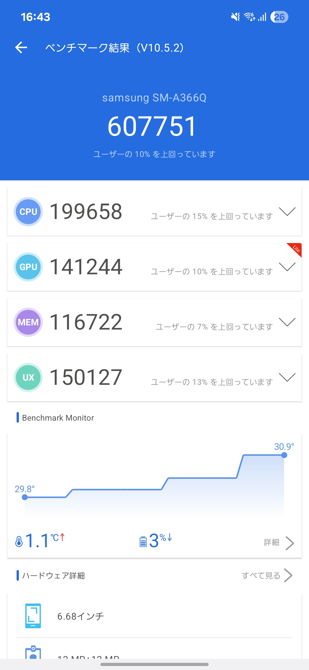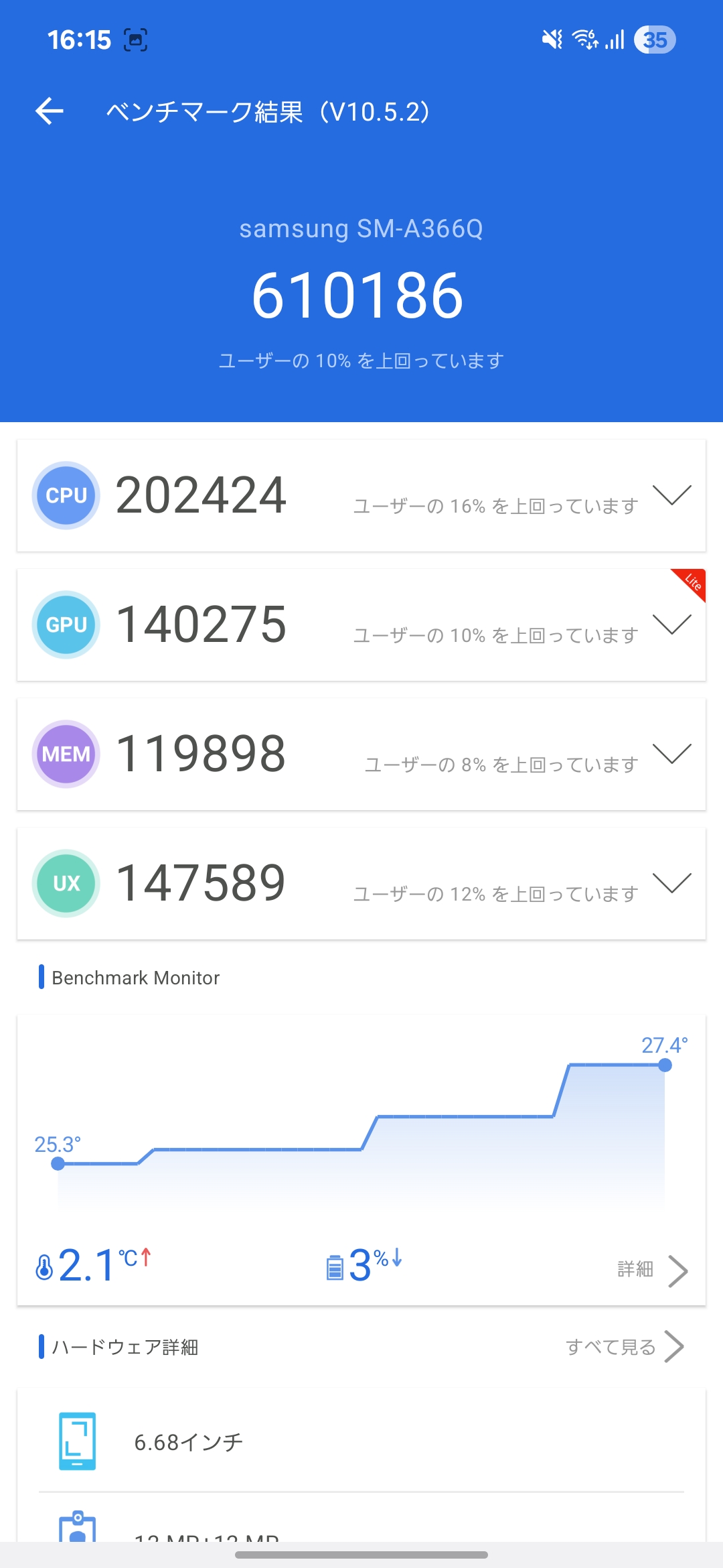 Galaxy A36 5Gのベンチマーク、動作感をみてきました。ベンチマークに至ってはSoC性能そのものなスコアという印象しかありません。