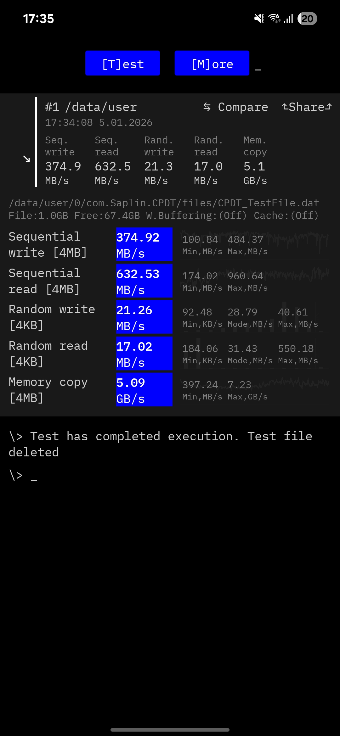 CPDT(Cross Platform Disk Test)では、ストレージとメモリのI/O速度を測定するパフォーマンスベンチマークアプリ。