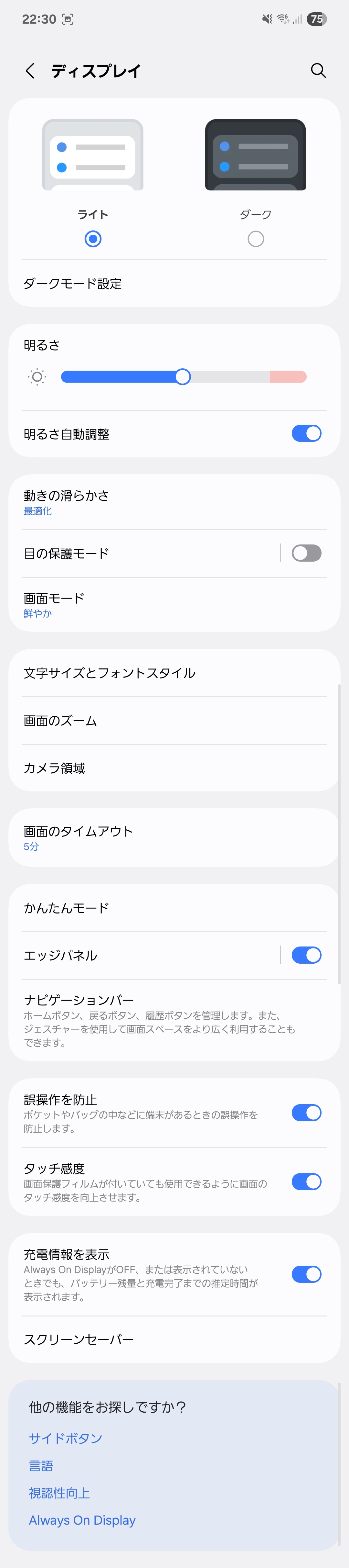 Galaxy A36 5Gのディスプレイ周り設定項目を確認