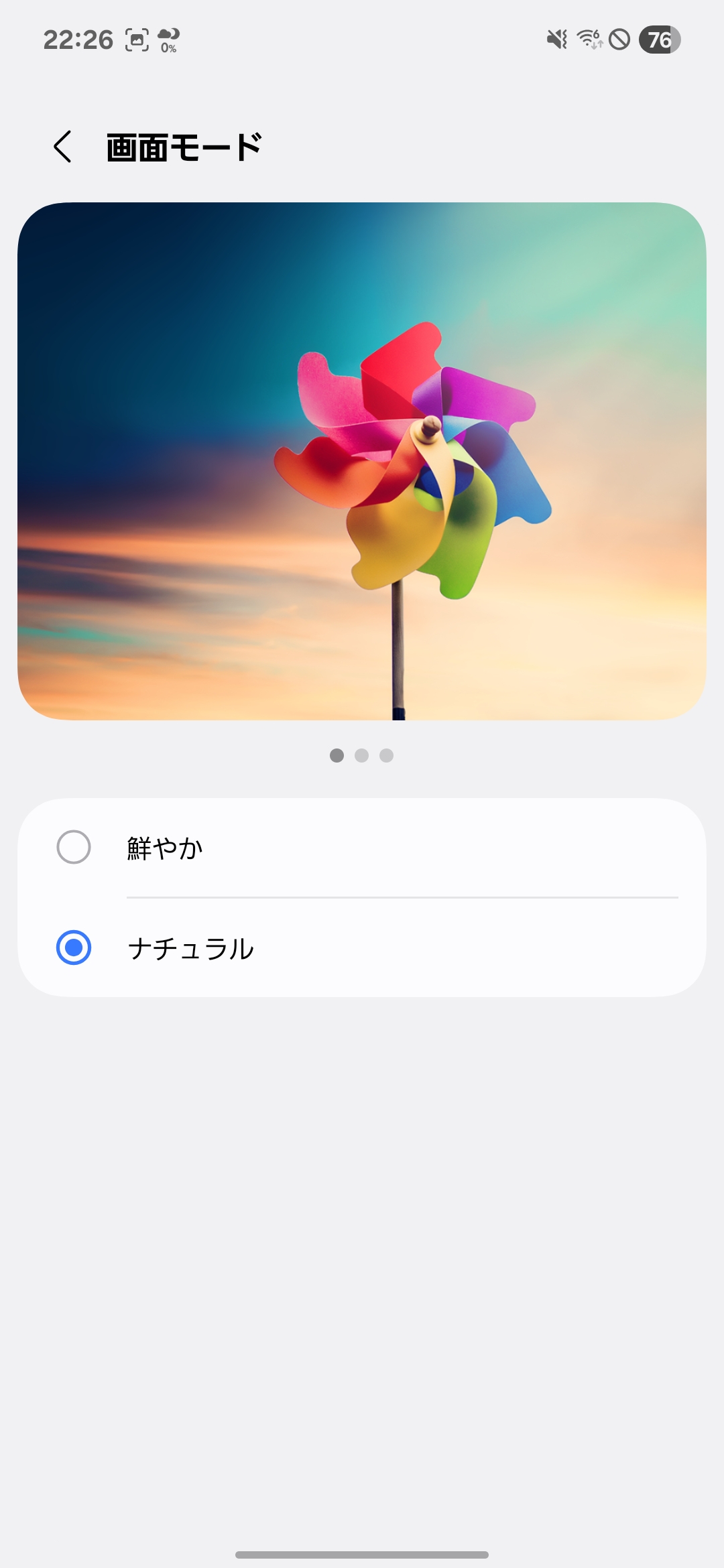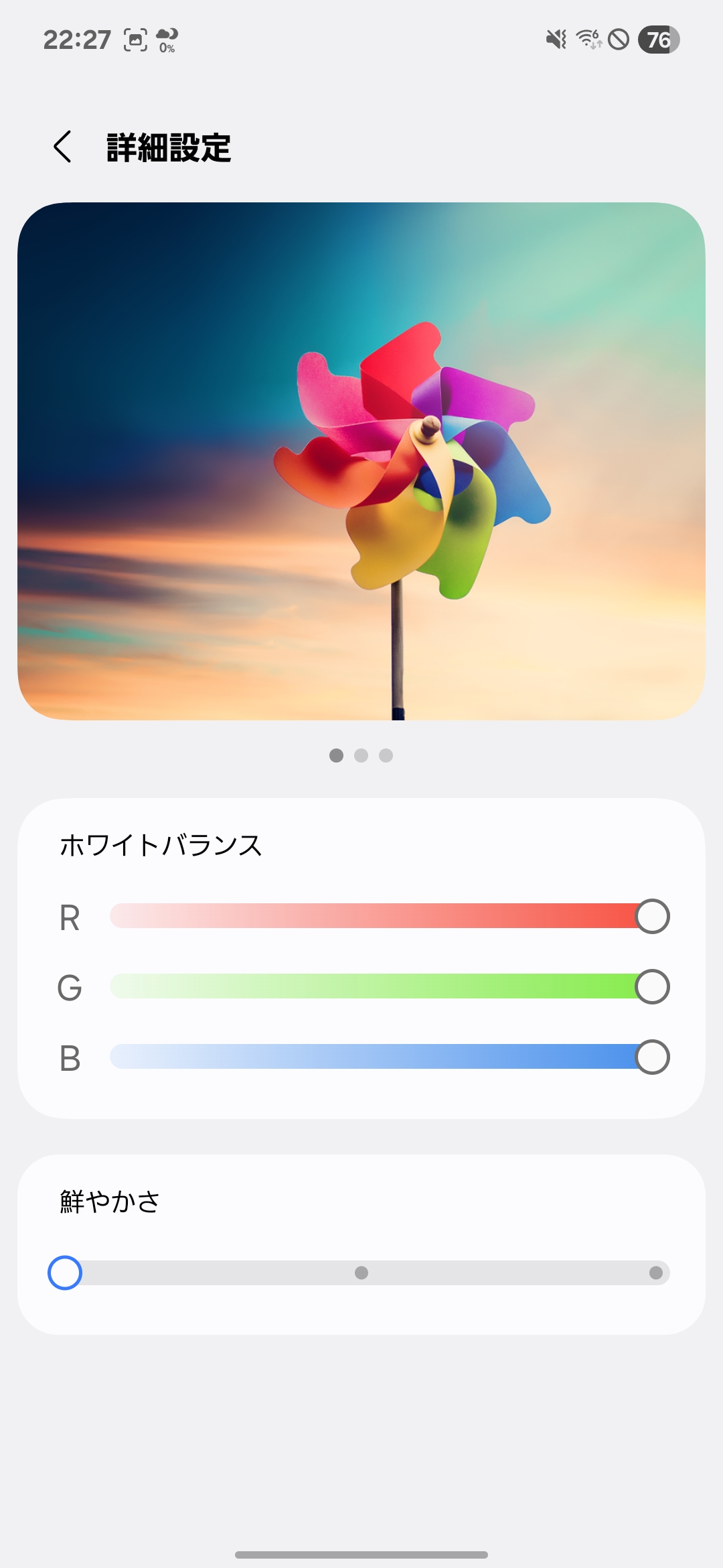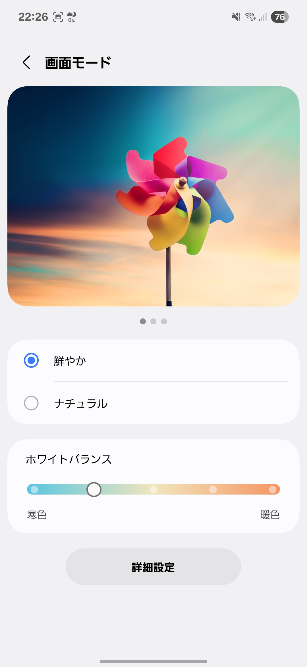 カラーの設定は「鮮やか」「ナチュラル」の2択となっています。「鮮やか」の時だけ細かな設定が可能となっています。