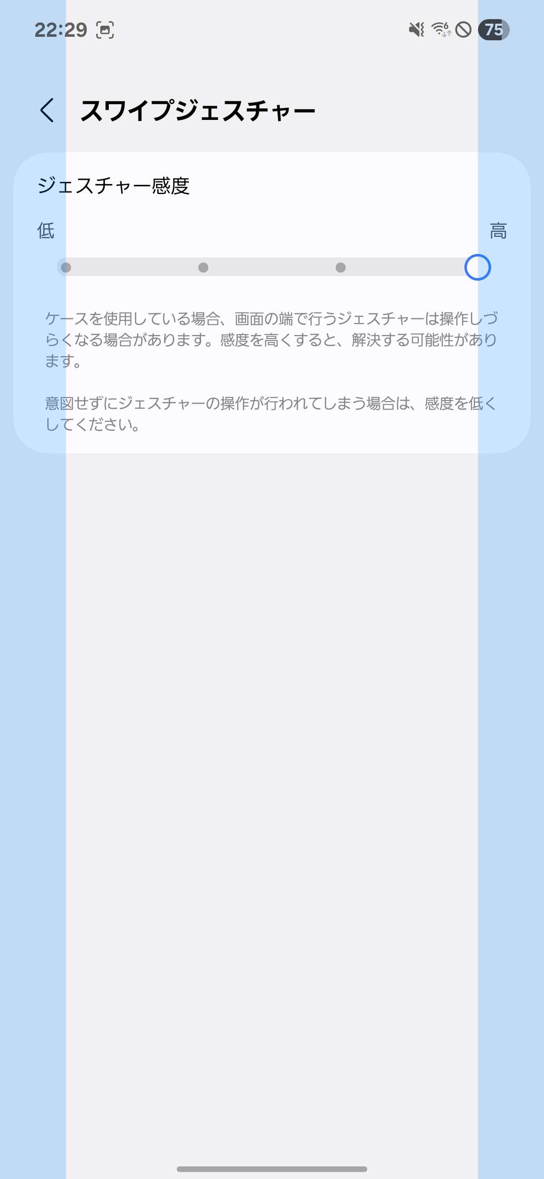ジェスチャー感度を変更すると反応するディスプレイエリアを変更することができます。これは便利だと感じる人も多いと思います。