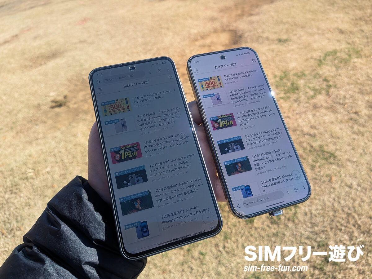 最大輝度3000nitのPixel 9 Proと比べて暗いですね。