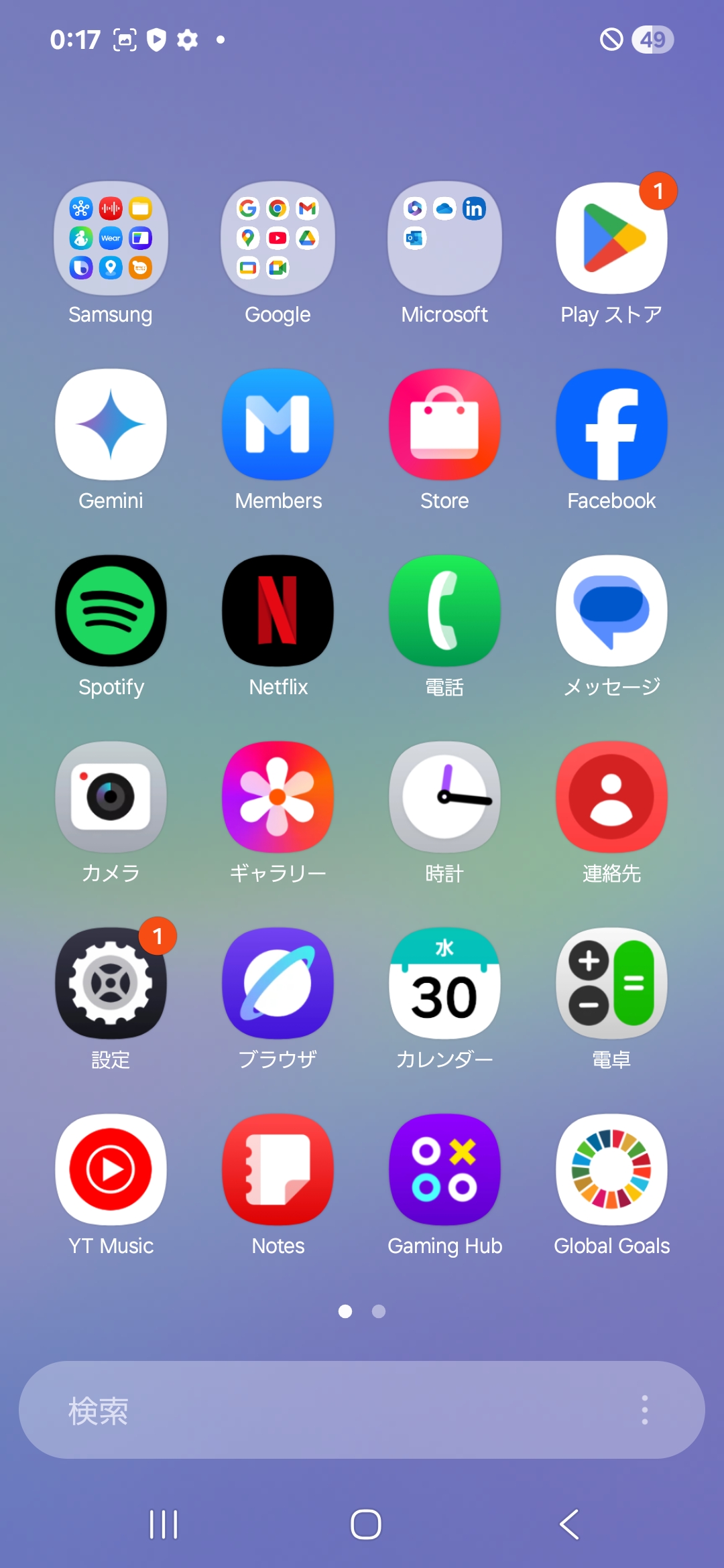 Galaxy A36 5Gの購入直後にインストールされているアプリ(プリインストールアプリ)を見ていきましょう。