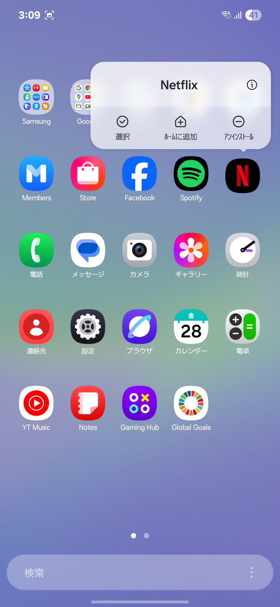 SpotifyやNetflix、Facebookなどのアプリはもちろん、サムスン純正アプリもほとんどアンインストールが可能です。