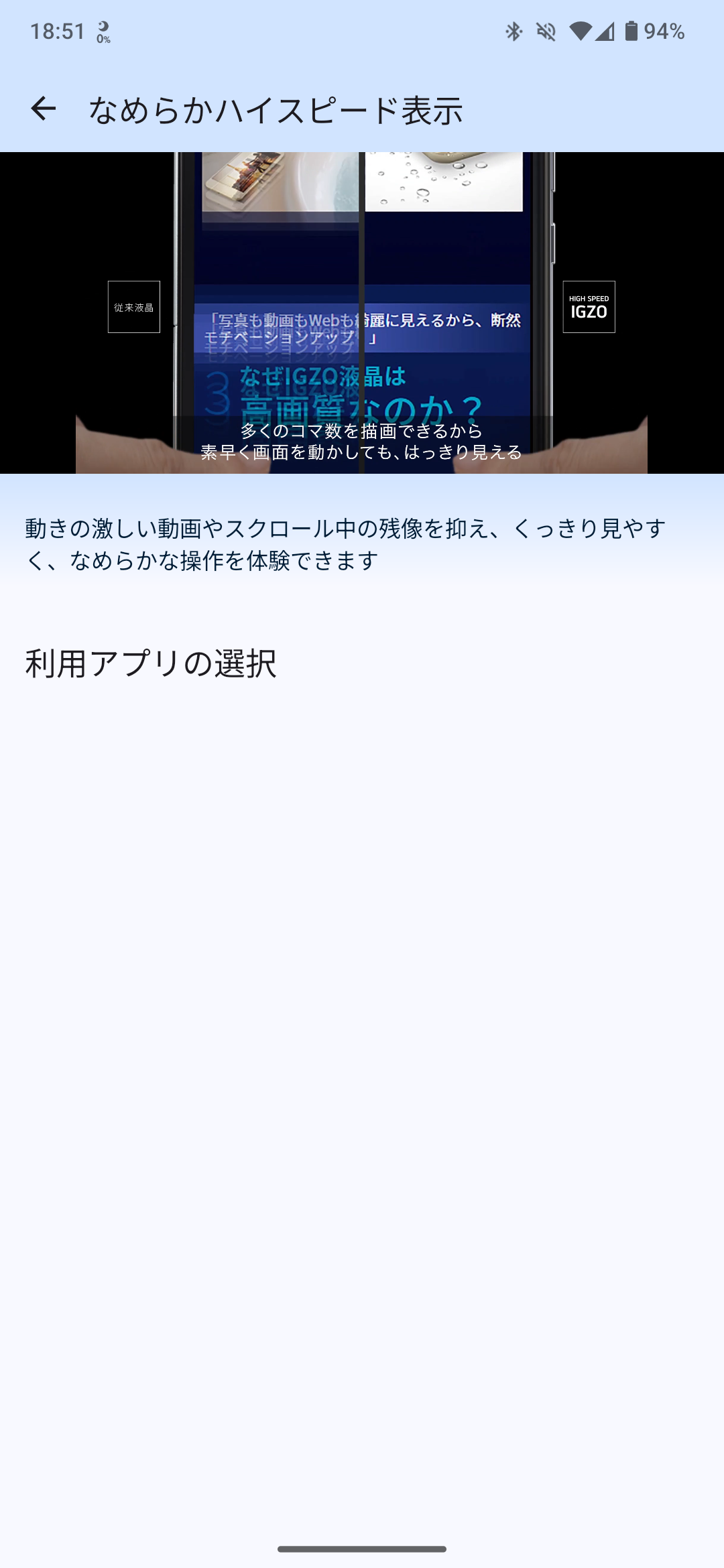 なめらかハイスピード表示はアプリ毎に選べる