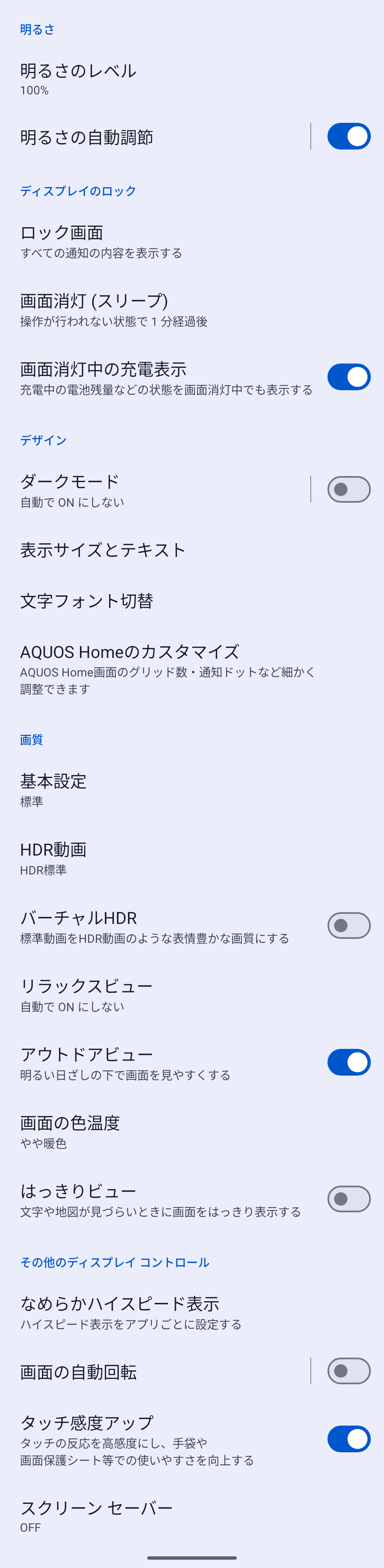 AQUOS sense10のディスプレイ周り設定項目を確認