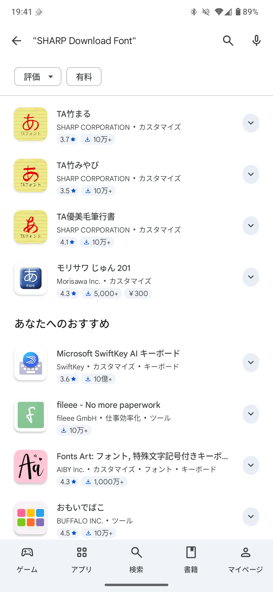 さらにその他にフォントをインストールして利用することも可能です。シャープはTAシリーズのフォントを展開しており、無料で利用できます。モリサワのじゅん201のみ有料で300円となっていました。
