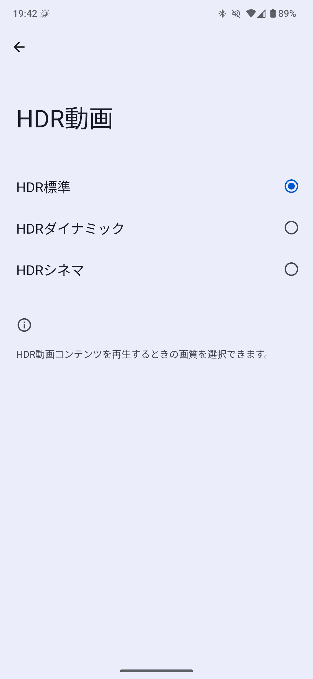 画質項目の【HDR動画】ではHDR動画を再生する時の画質を3択から選択できます。