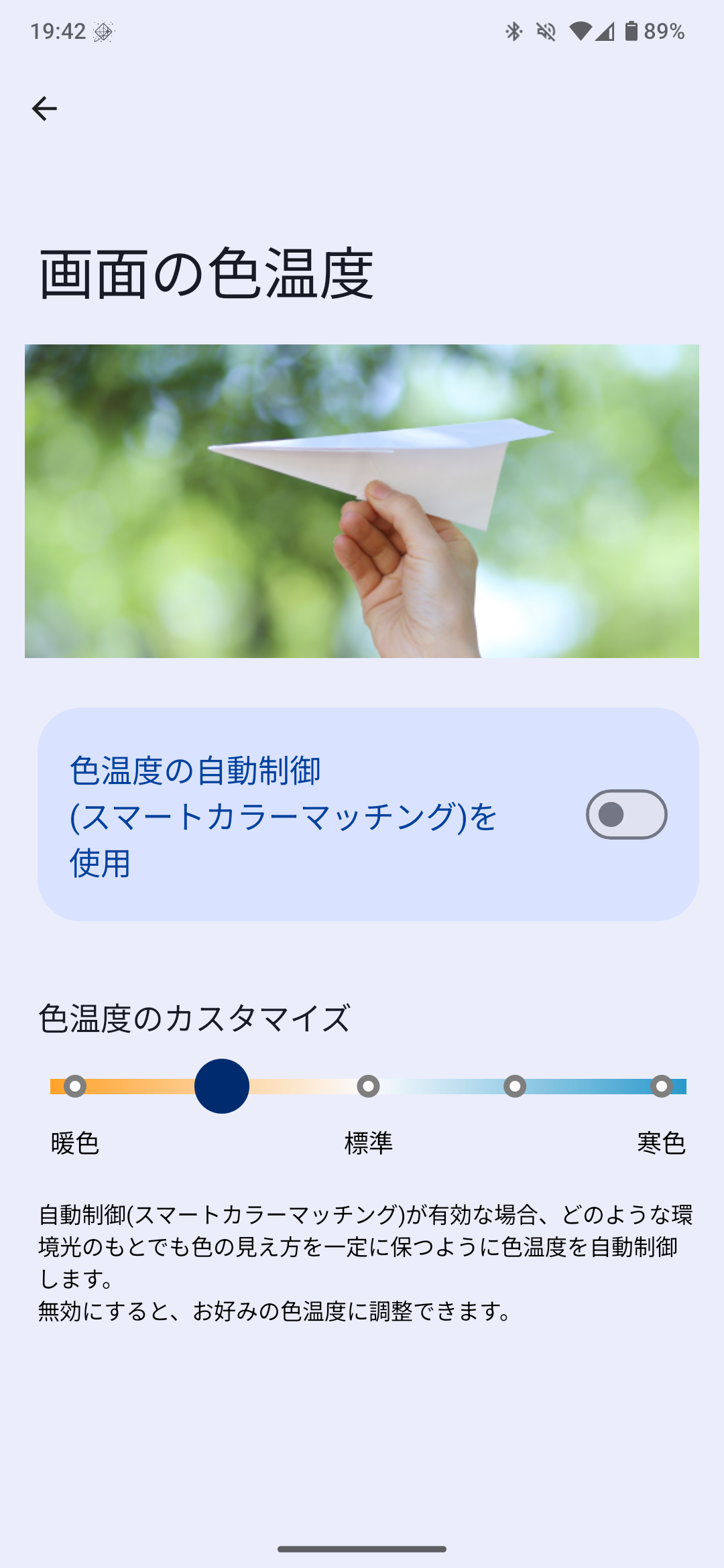 画質項目の【画面の色温度】では暖色~感触まで5段階で変更可能です。