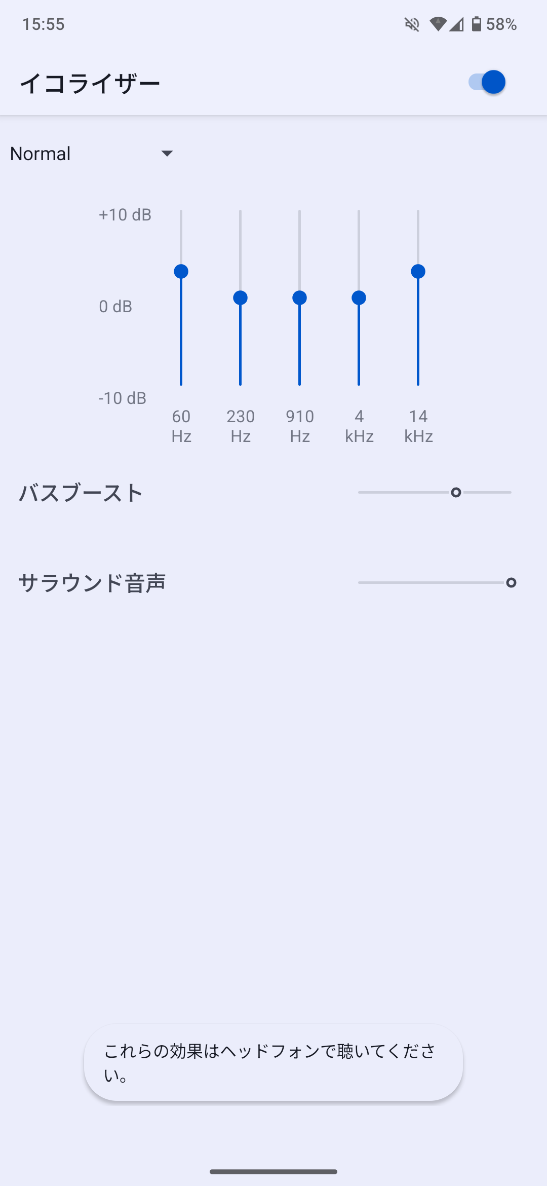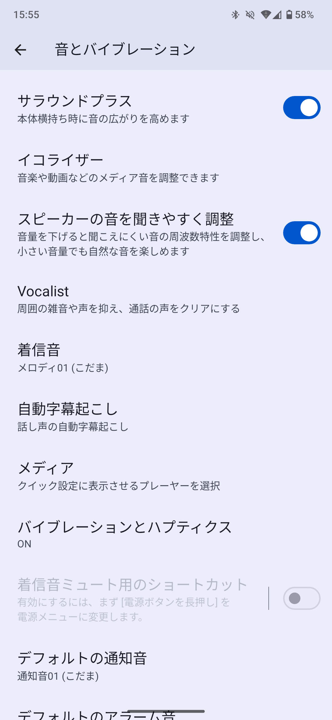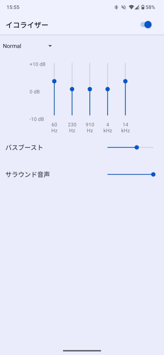 AQUOS sense10のサウンド効果としては、サラウンドプラスとイコライザーがあります。