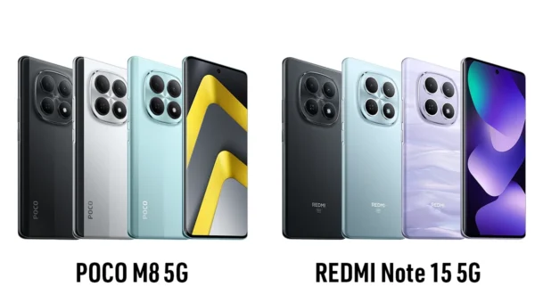 REDMI Note 15 5Gはスペック構成がほぼ同じPOCO M8 5Gのカメラ強化版といえます。また、 カラーリングやランチャーの違いなどはありますが、基本的に焼き写し機種と言える内容です。