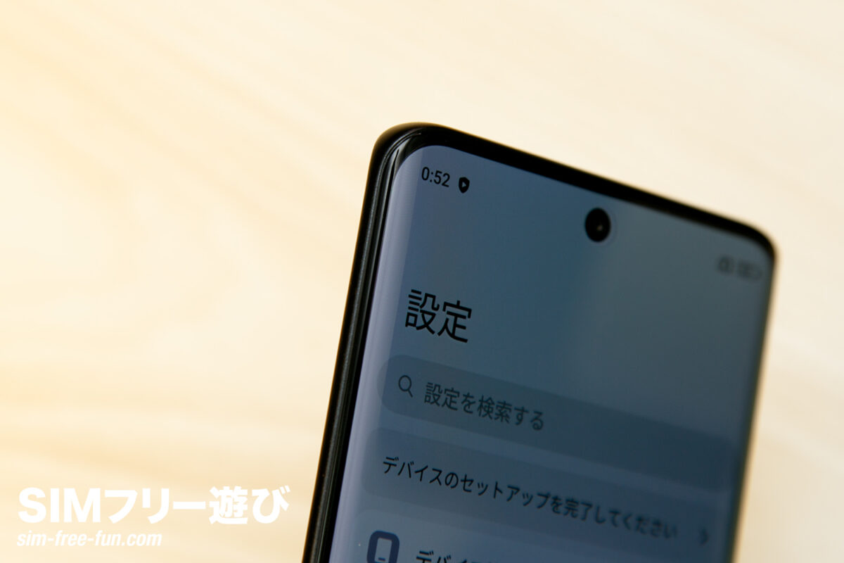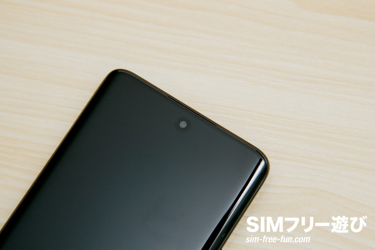 ベゼル幅はそこそこ太いですが、エッジディスプレイなので全く気にならないレベル。敢えて言えば、ミドルレンジとしては一般的な太さといえるでしょう。