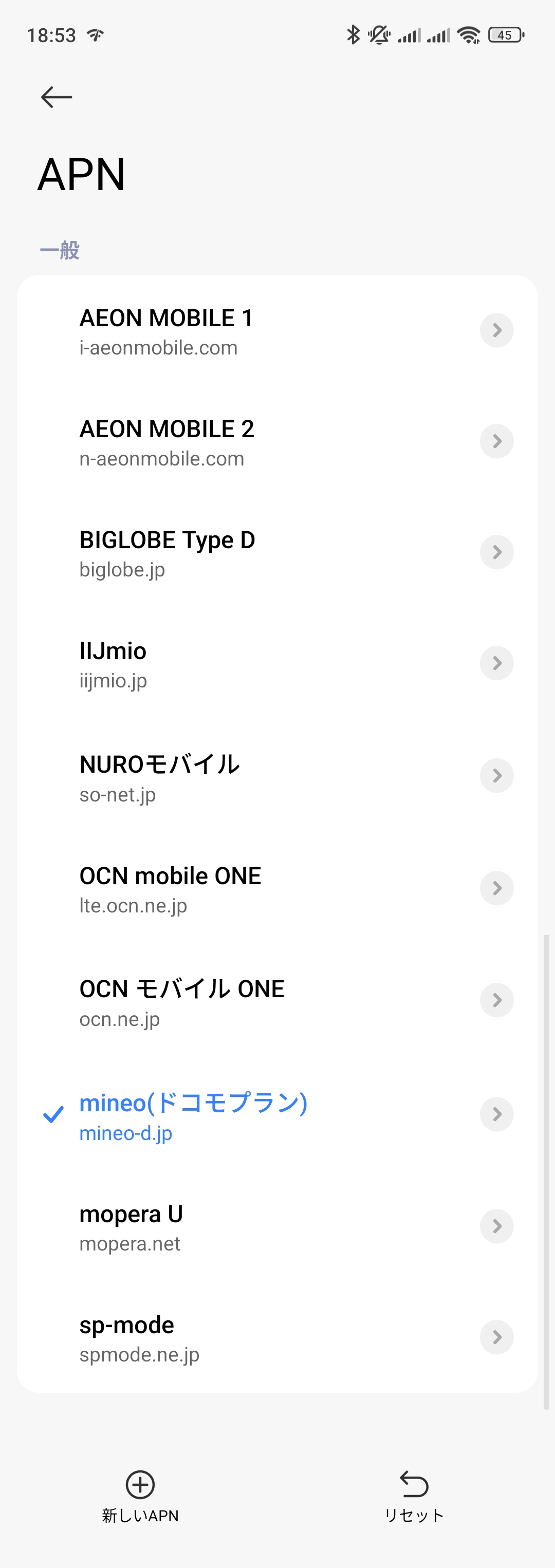 基本的に設定済みのAPNは充実しているという印象はないですが、主要な格安SIMは設定済みになっている印象でした。