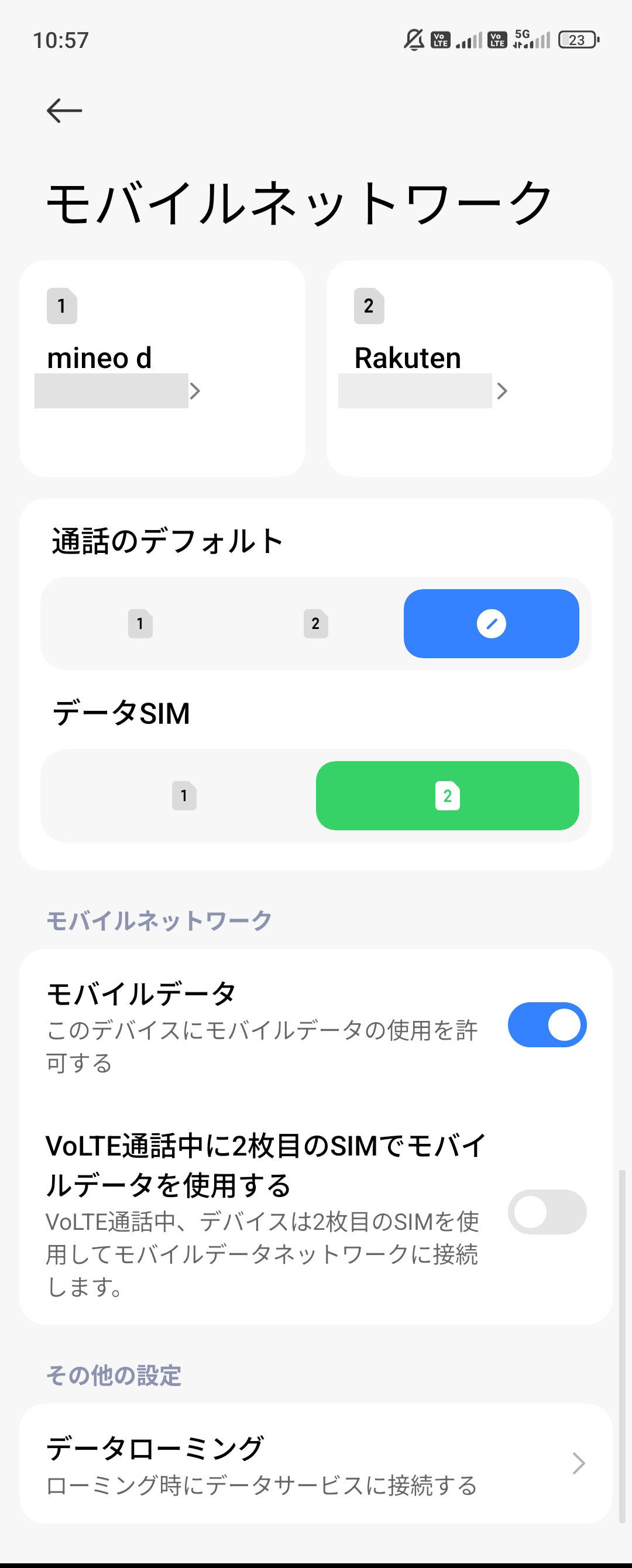 SIM2はSDカードと排他的(SIM2のスロットとSD)になっています。