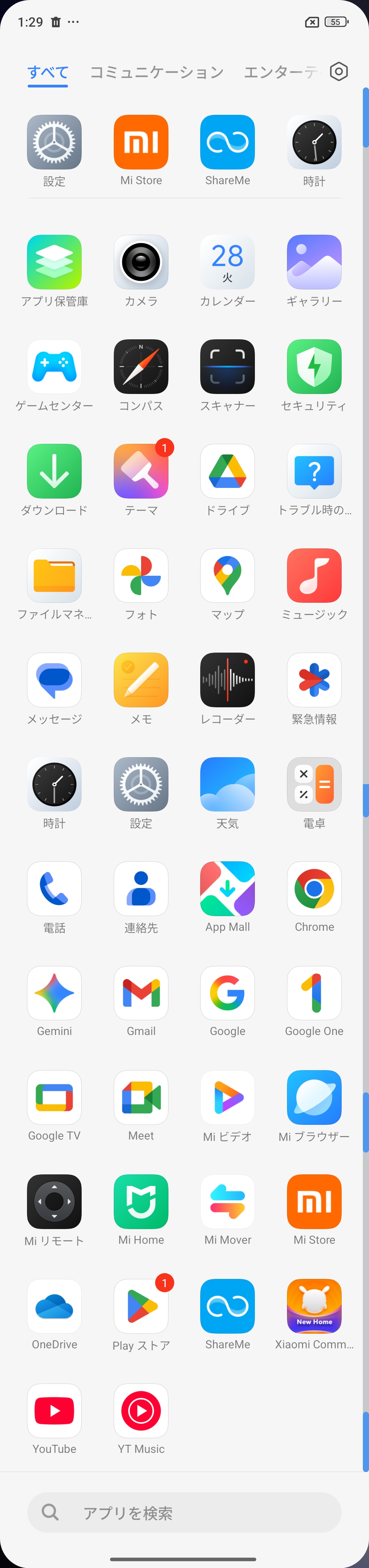 GoogleやXiaomi純正アプリ以外にも色々とインストールされています。そう多くはないですが、ゲームやSNSなど、人によっては要らないアプリです。
