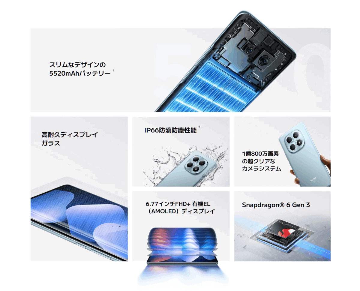 | REDMI Note 15 Pro 5G | IP66 / IP68 | SGS プレミアムパフォーマンス認証取得 | 2026年1月15日 | 5万4980円~ |