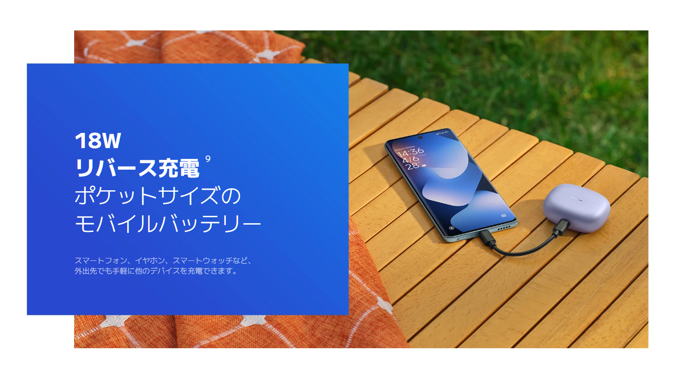 | 名称 | バッテリー容量(mAh) | 対応充電規格 | 最大充電ワット数(最大) | フル充電までの計測結果 ※1 | ワイヤレス充電 | リバース充電(最大) | 発売日 | 定価 |