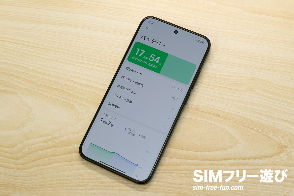 電池持ちに関しては、容量の割には減りが早いような…という印象がありますが、他のミドルレンジと比べて劣ると感じることはないため、特に問題ないでしょう。