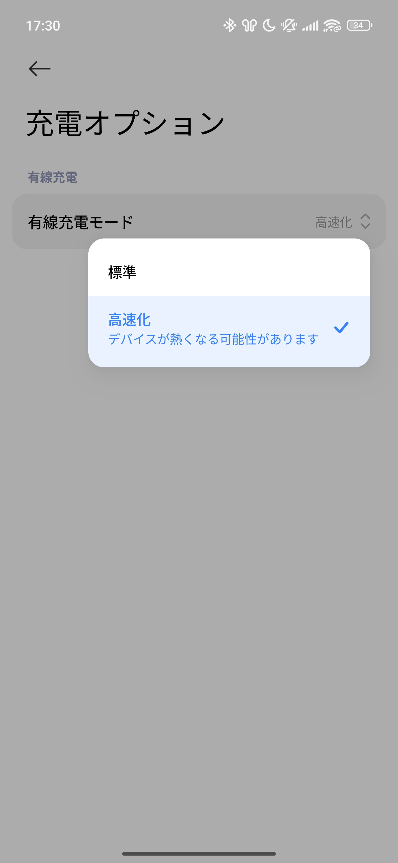 充電モードでは誘電する速度を選べます。