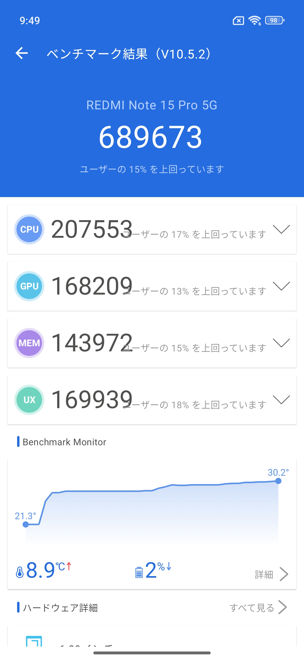以上、REDMI Note 15 Pro 5Gの動作感、ベンチマークの評価レビューでした。