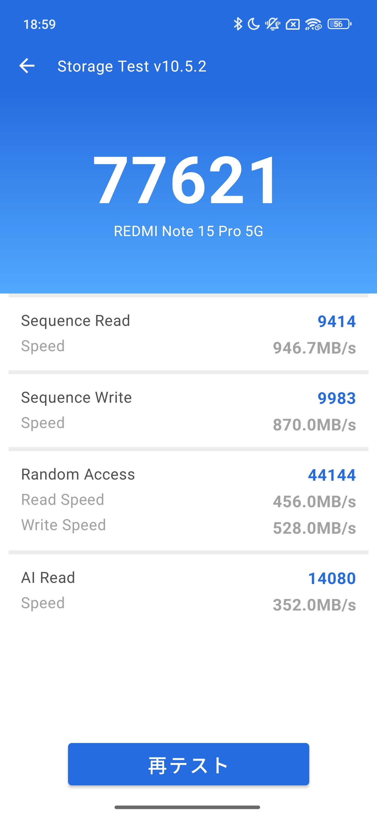 AnTuTu Benchmark ストレージテストはVer10.5.2での計測となります。